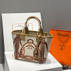 STEEPLE 28 BAG IN OFF-WHITE MIX BROWN CANVAS AND CALFSKIN