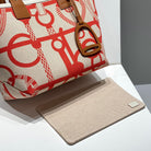 STEEPLE 28 BAG IN OFF-WHITE MIX LIGHT RED CANVAS AND BROWN SWIFT LEATHER