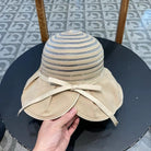 STRIPED BUCKET HAT IN WHEAT BEIGE COTTON 434997