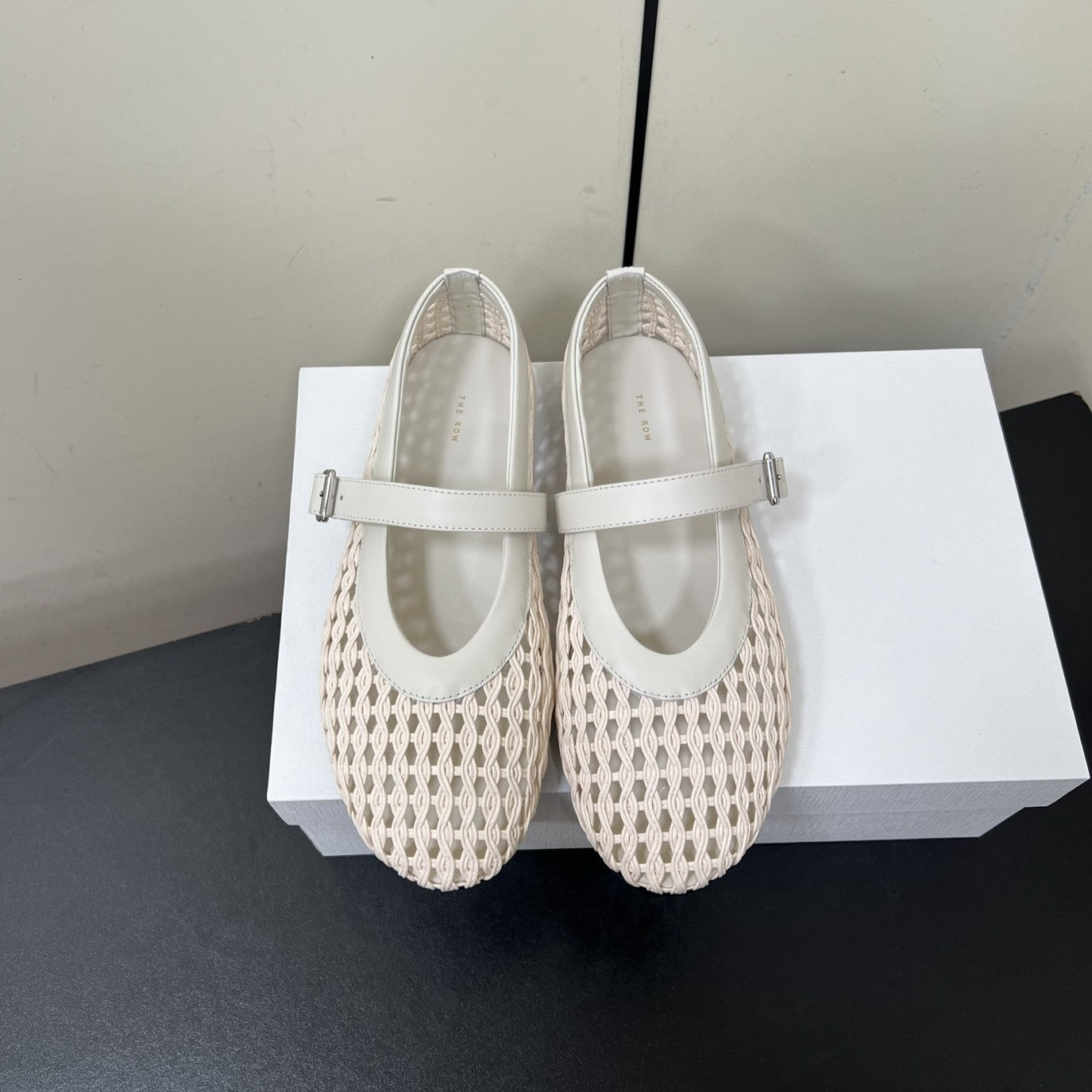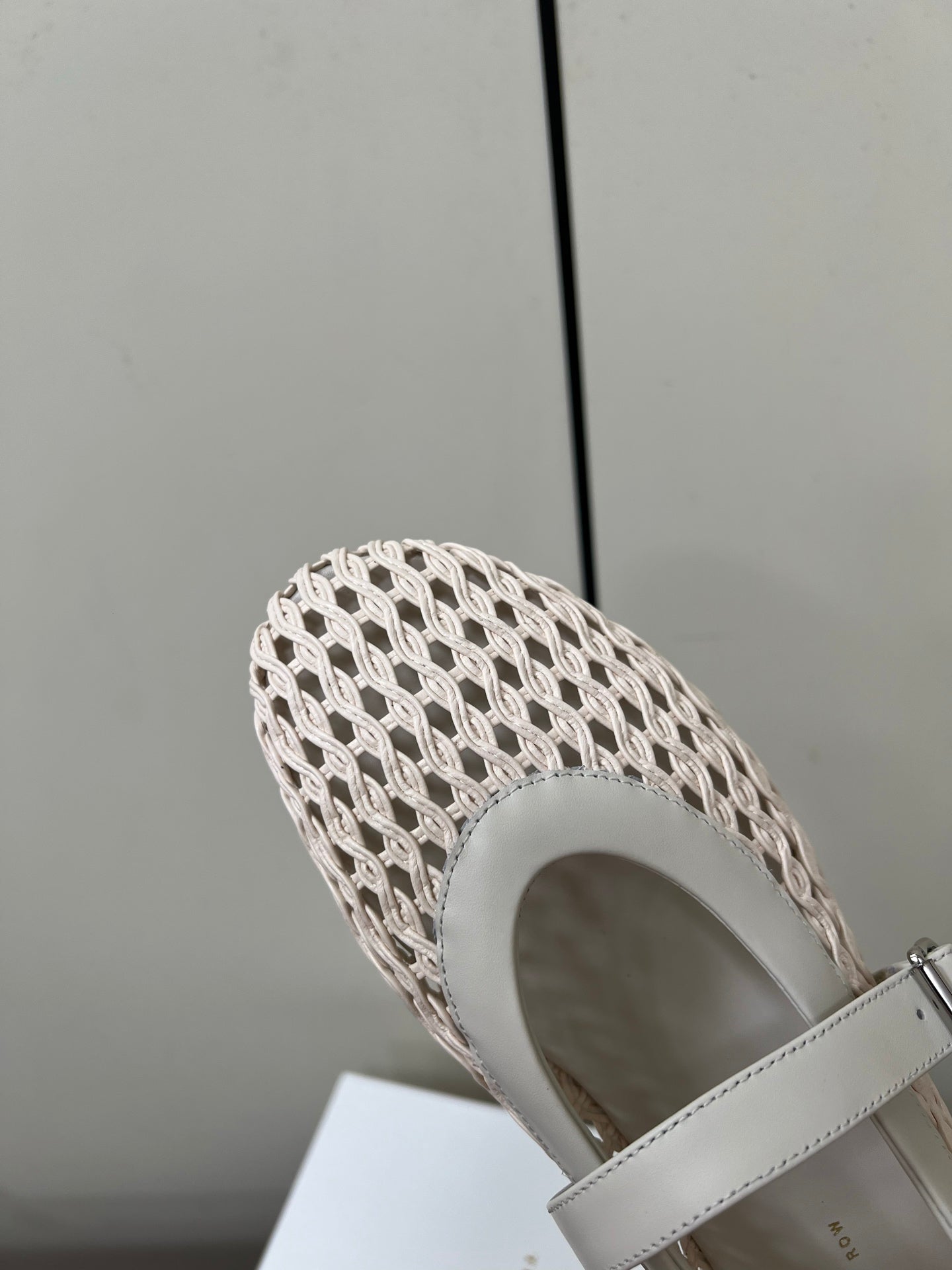 The Row 25ss Mary Jane Flat Light Pink Mesh And Grey Cowhide 340042