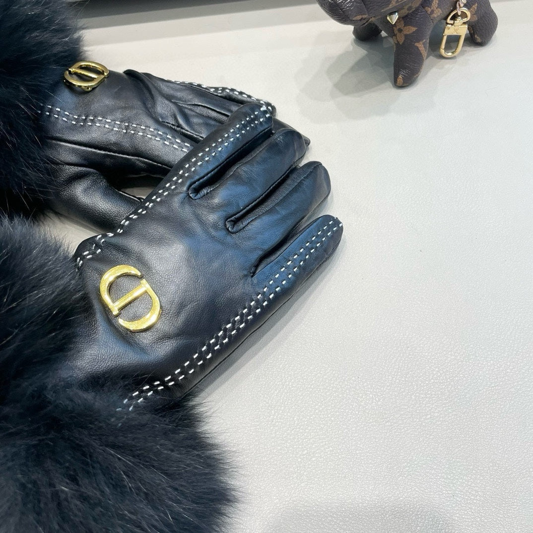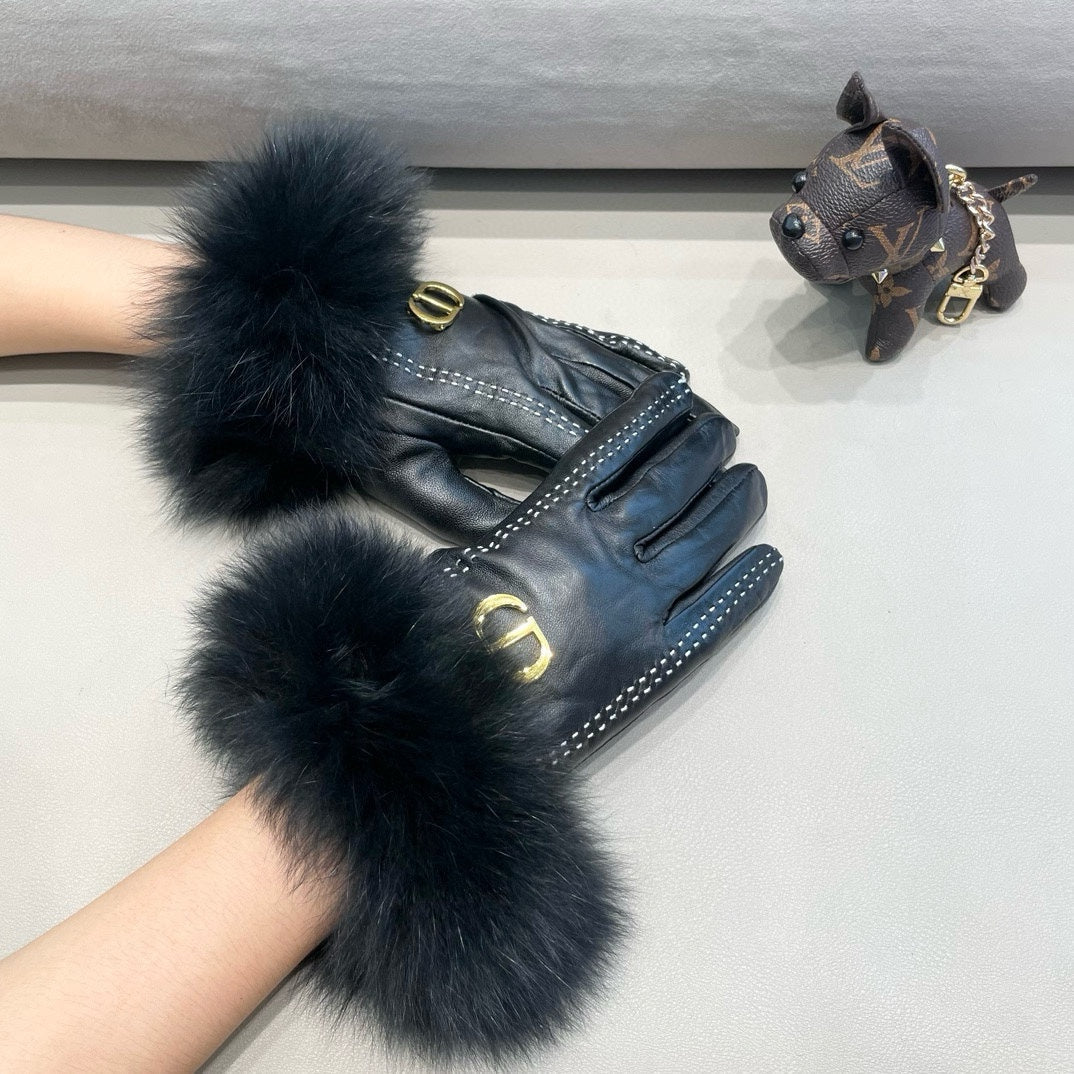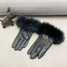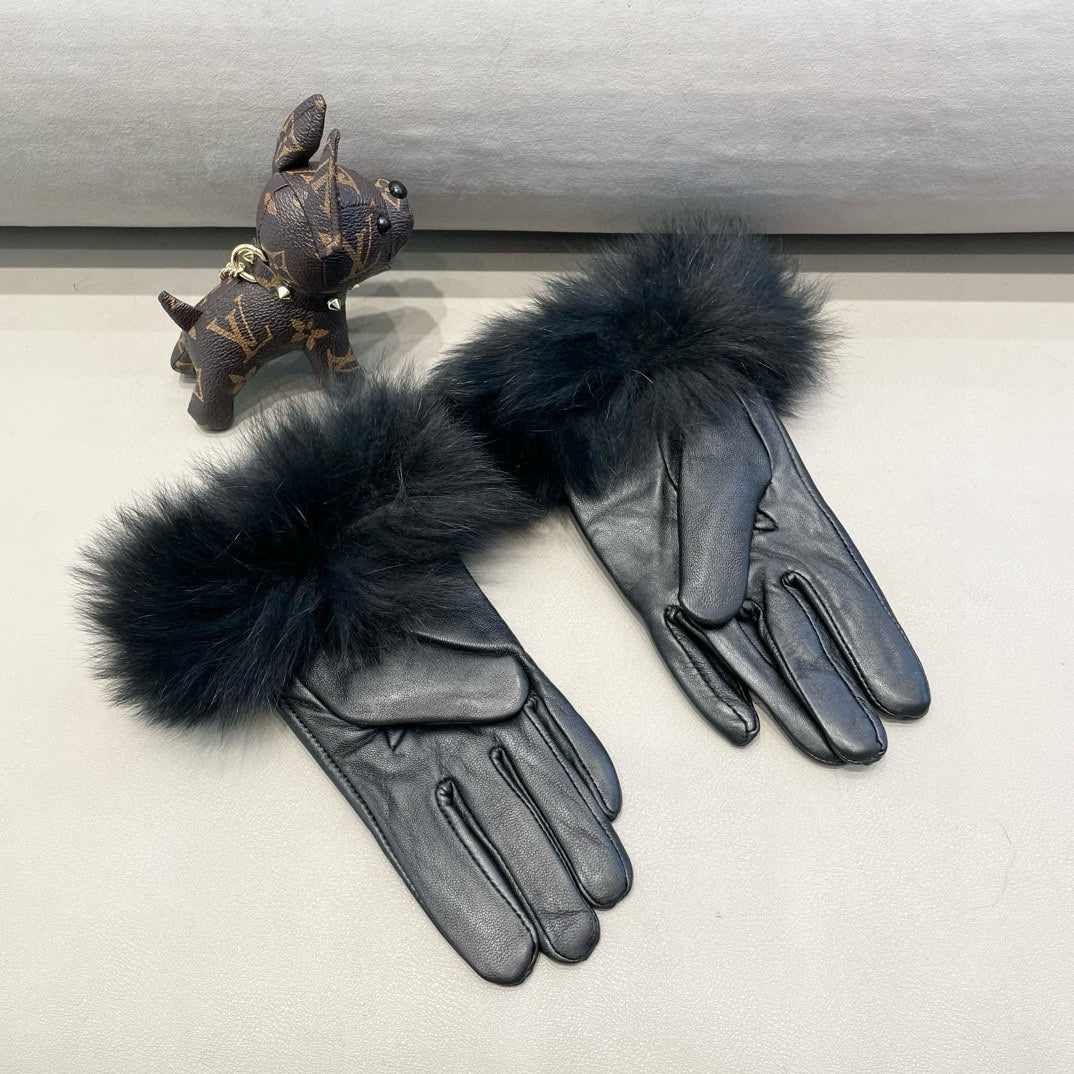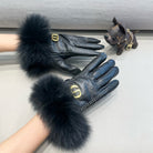 TOUCHSCREEN GLOVES IN BLACK SHEEPSKIN AND FOX FUR 423400
