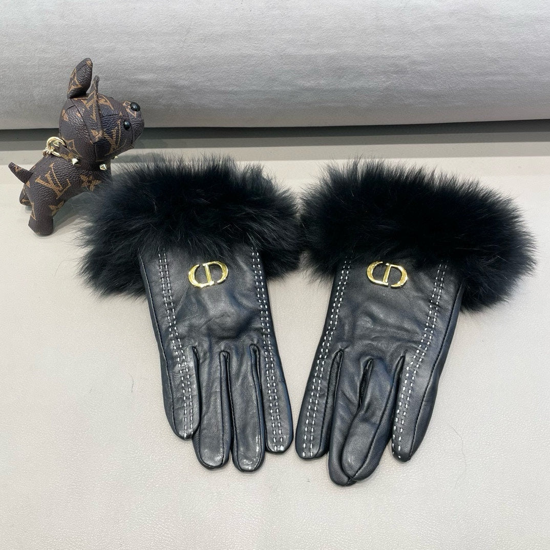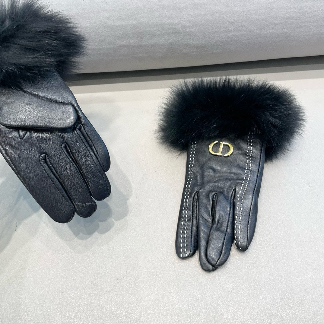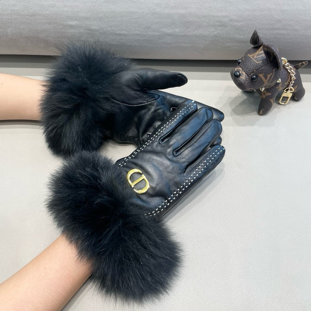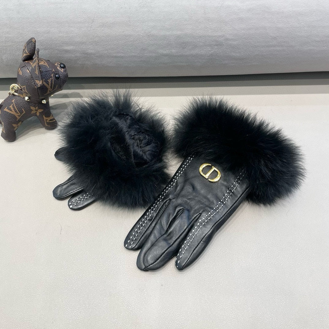 TOUCHSCREEN GLOVES IN BLACK SHEEPSKIN AND FOX FUR 423400