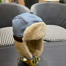 TRAPPER HAT IN LIGHT BLUE SUEDE AND RABBIT FUR 439536