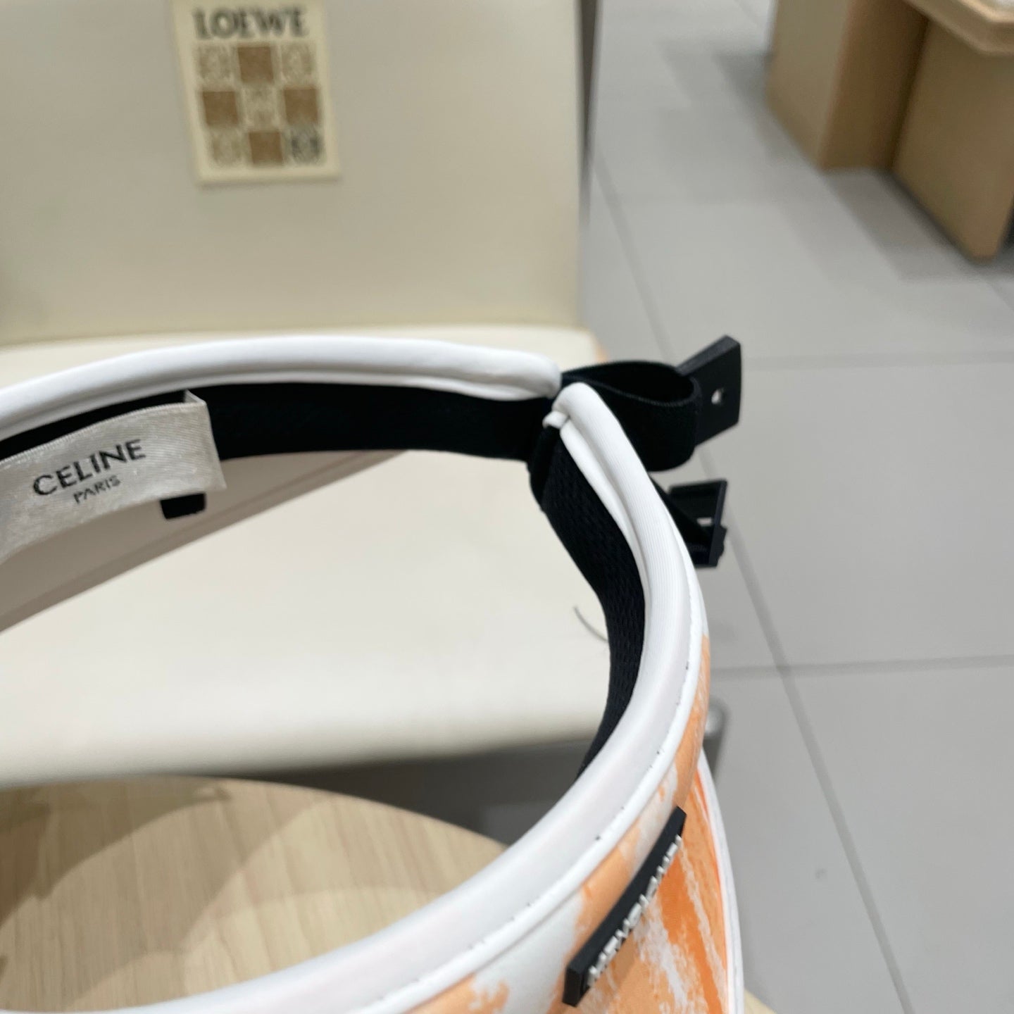VISOR HAT MODEL 652202 IN ORANGE AND WHITE FABRIC