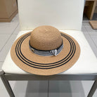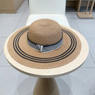 WIDE BRIM HAT MODEL 650410 IN BROWN WITH BLACK STRIPES WOVEN STRAW