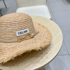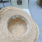 WIDE BRIM HAT MODEL 650421 IN NATURAL WITH BEIGE LEATHER STRAP RAFFIA STRAW