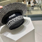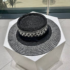 WIDE BRIM HAT MODEL 652048 IN BLACK AND WHITE WOVEN STRAW