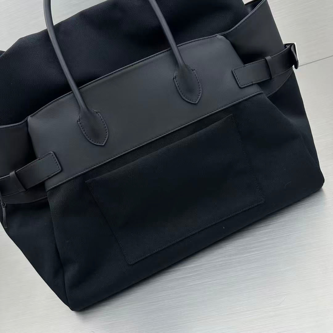 The Row Margaux 17 Inside Out Black Canvas & Leather