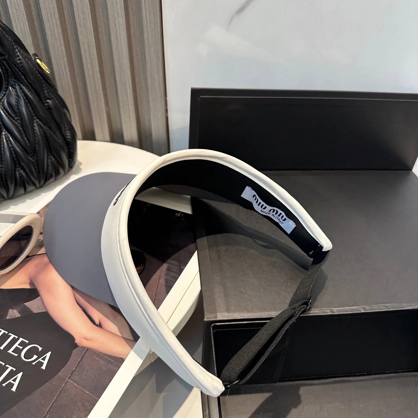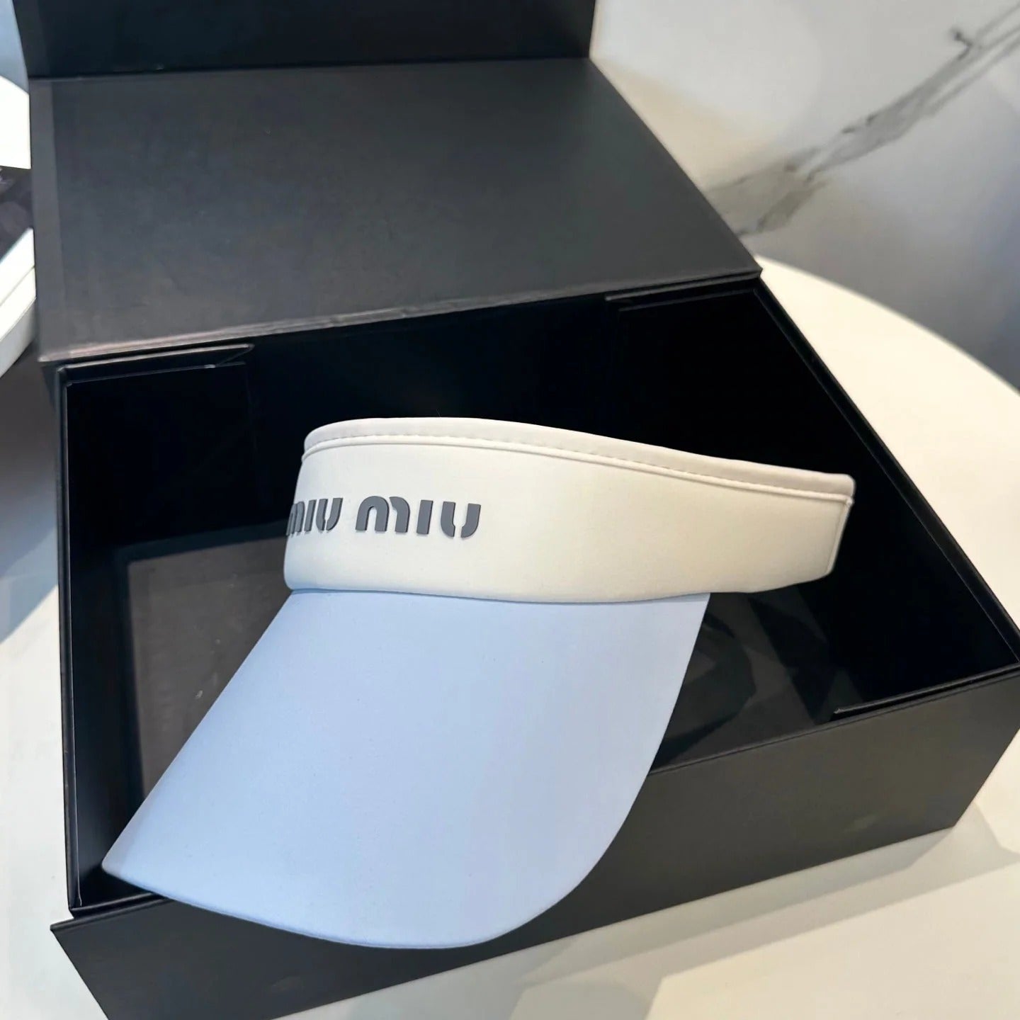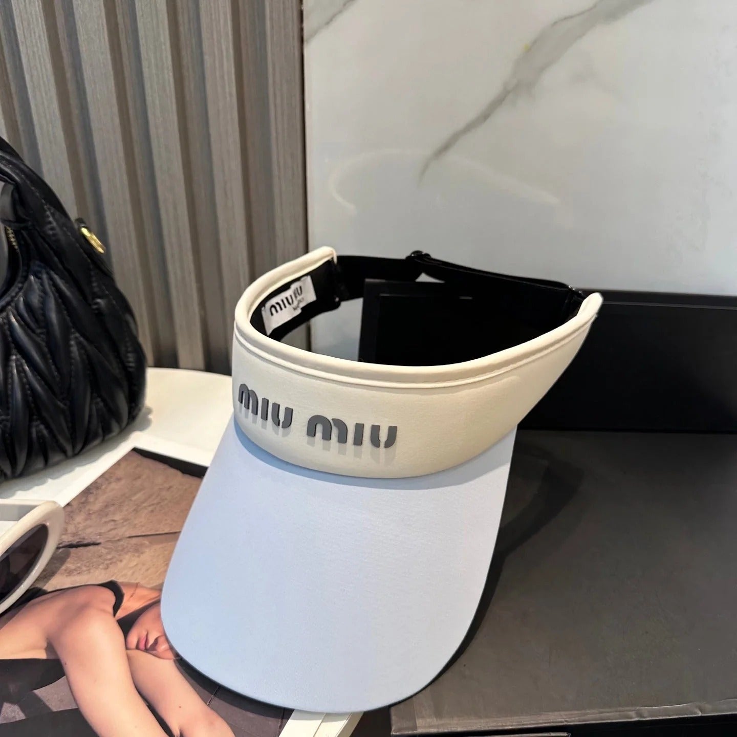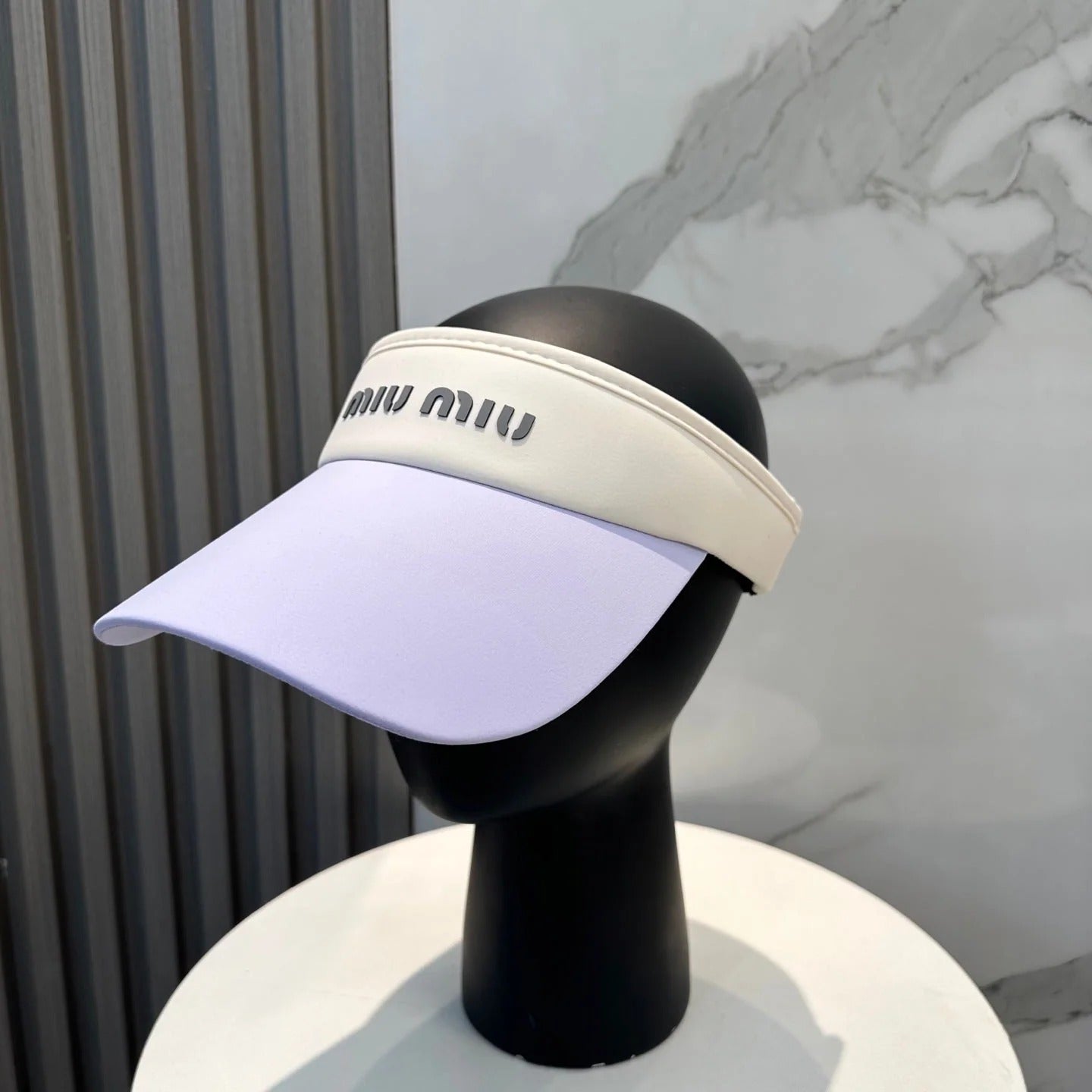 MM FASHION VISOR CAP IN BLACK AND WHITE WITH LOGO TEXT EMBROIDERY