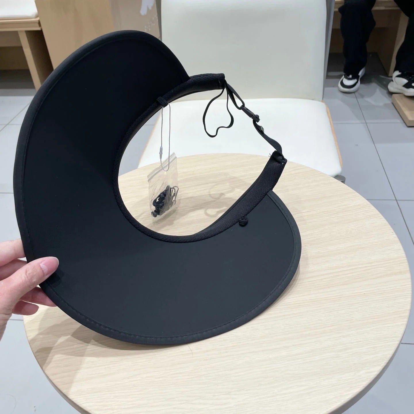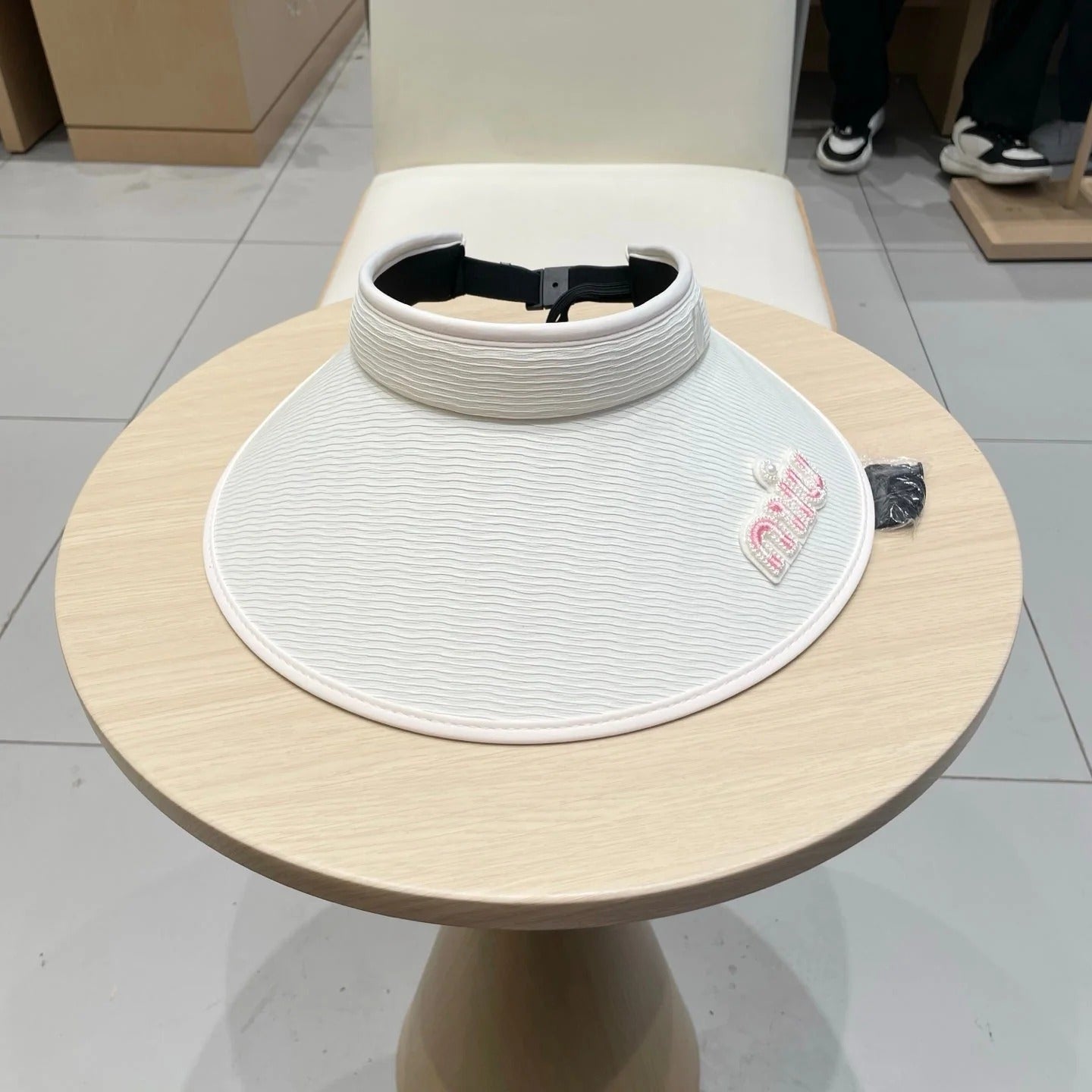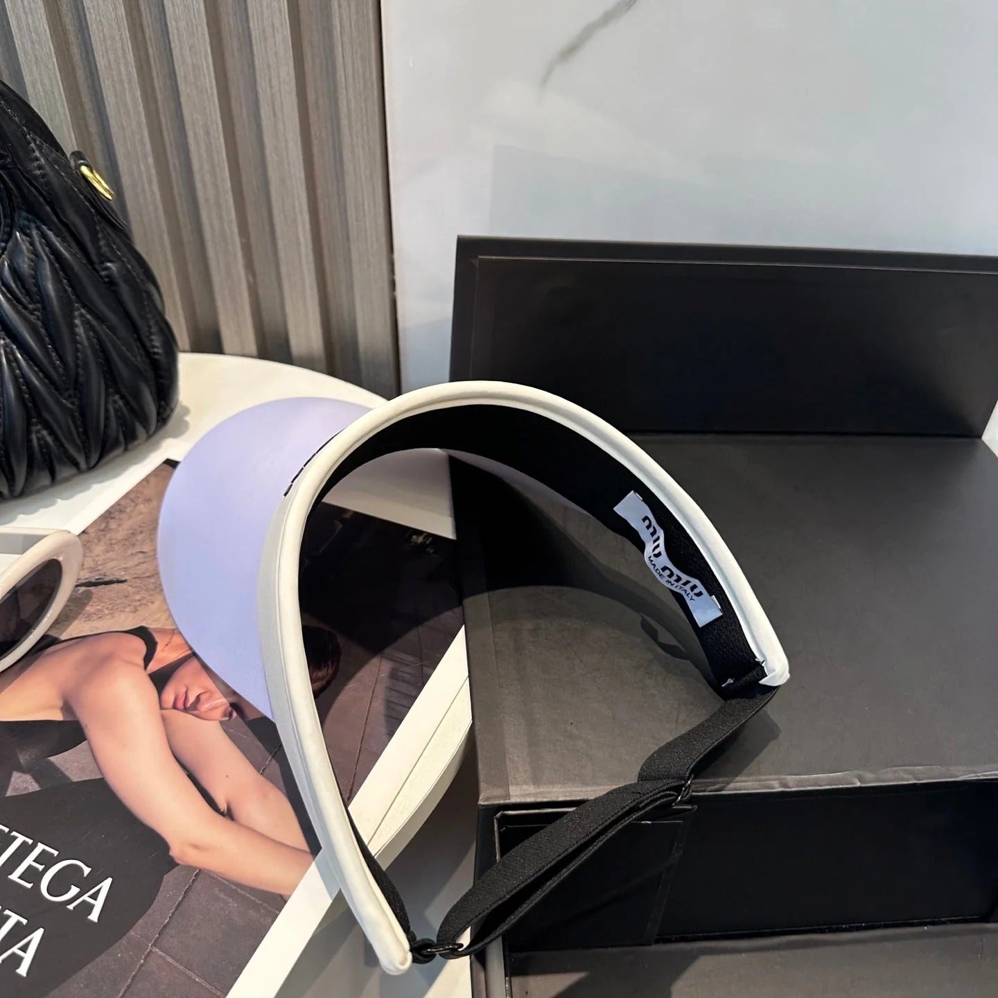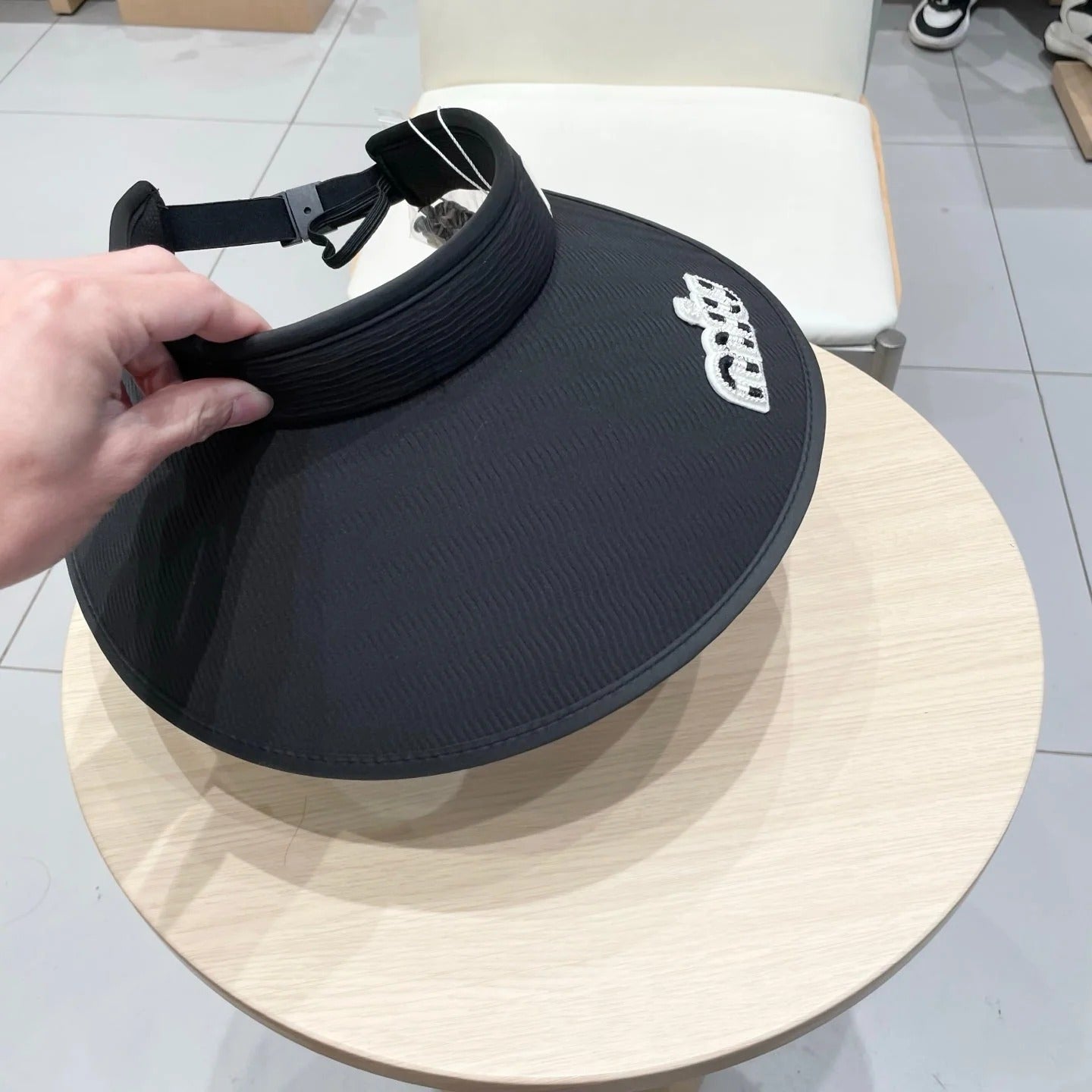 MM FASHION VISOR CAP IN BLACK AND WHITE WITH LOGO TEXT EMBROIDERY