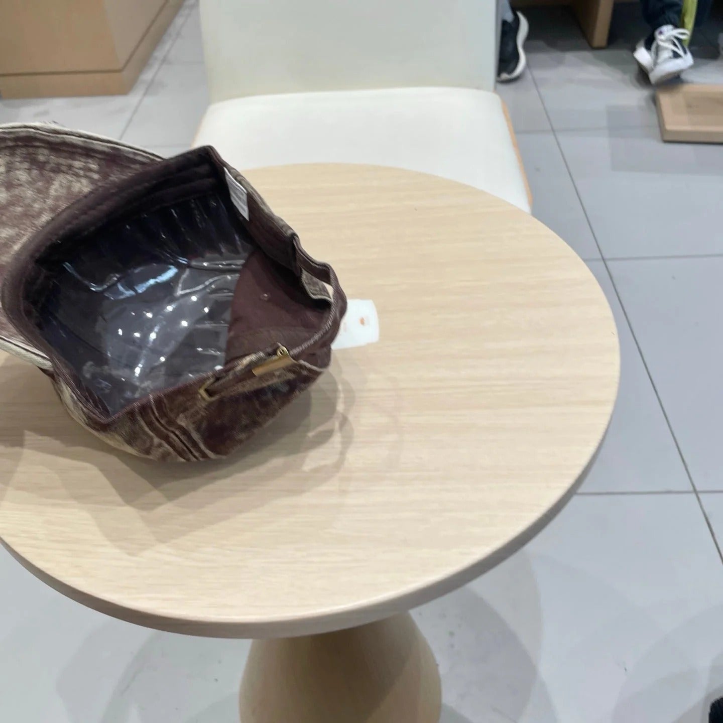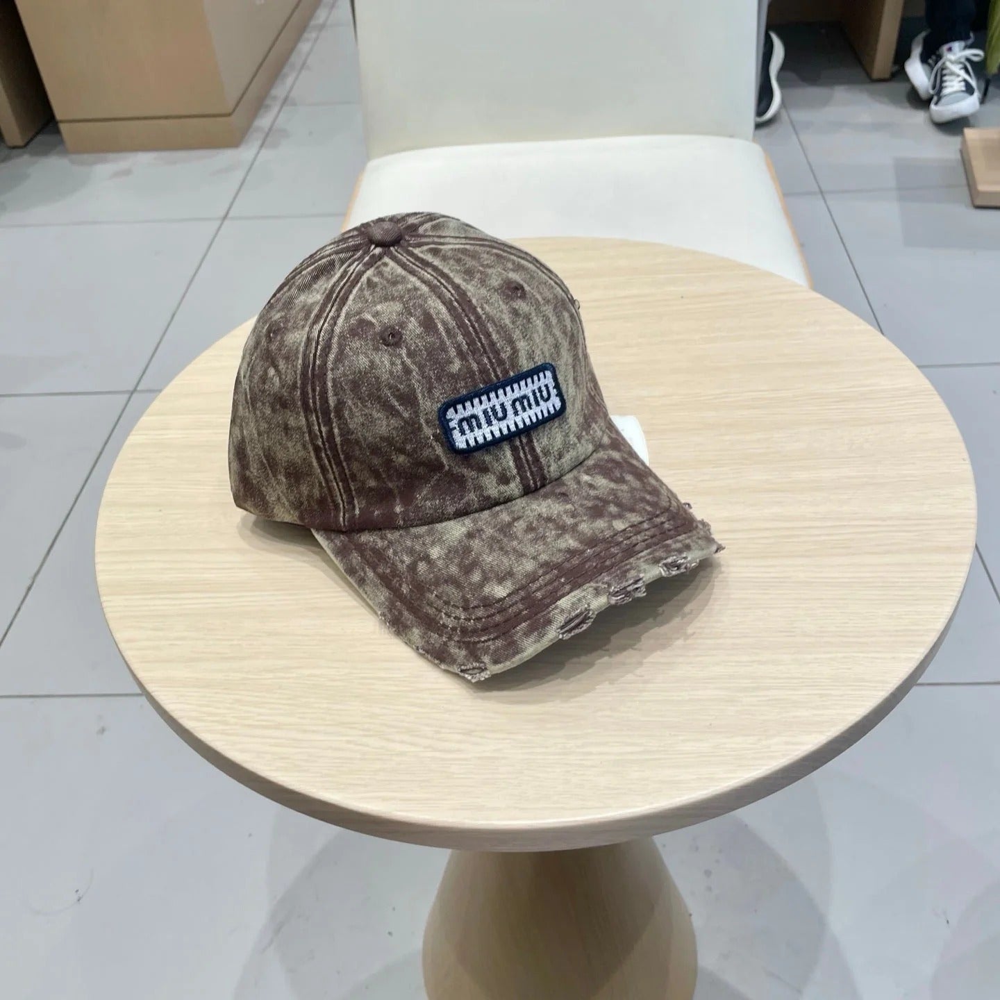 MM DISTRESSED FABRIC BASEBALL CAP IN BROWN WITH EMBROIDERED LOGO
