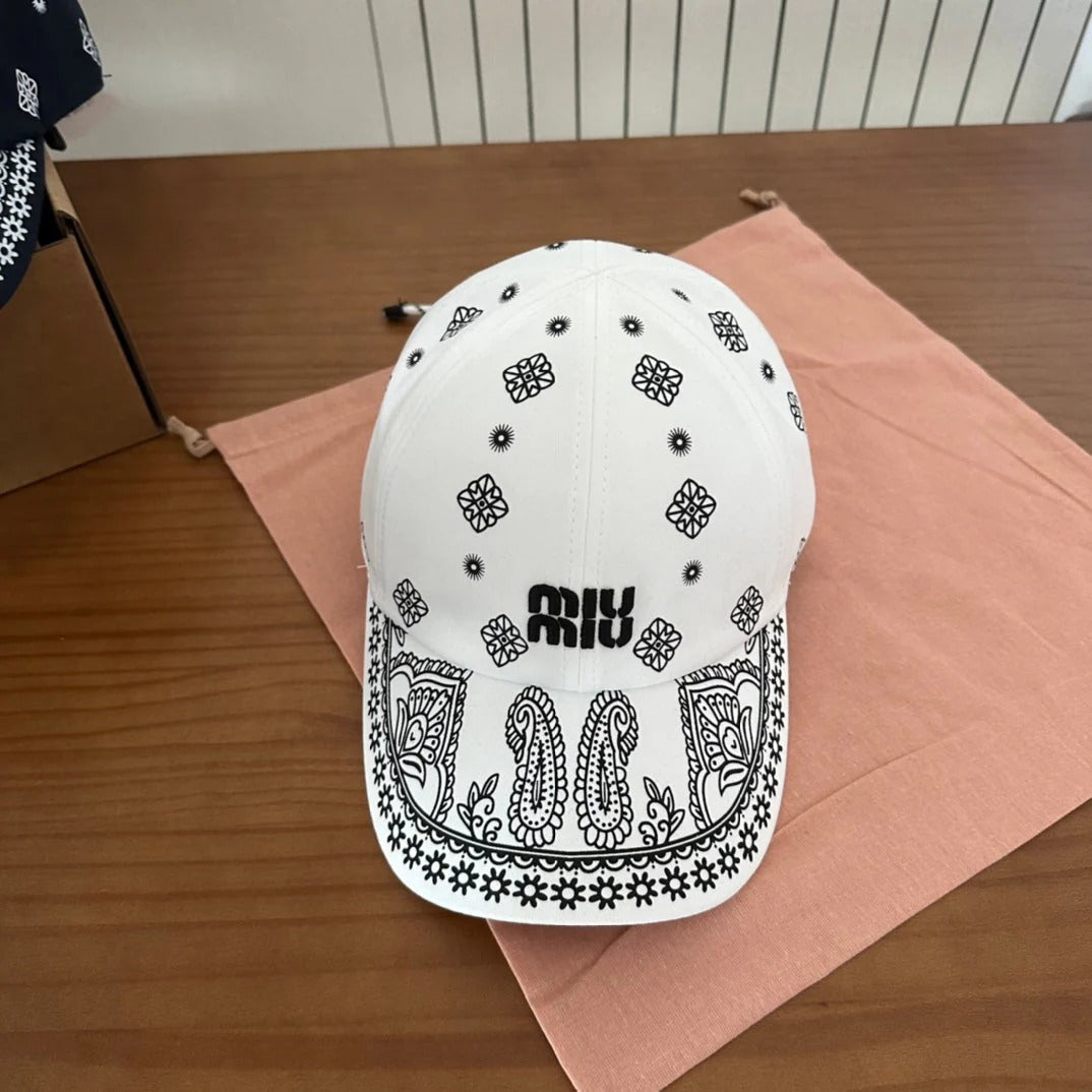 MM BASEBALL CAP IN WHITE WITH WHITE EMBROIDERED PATTERN