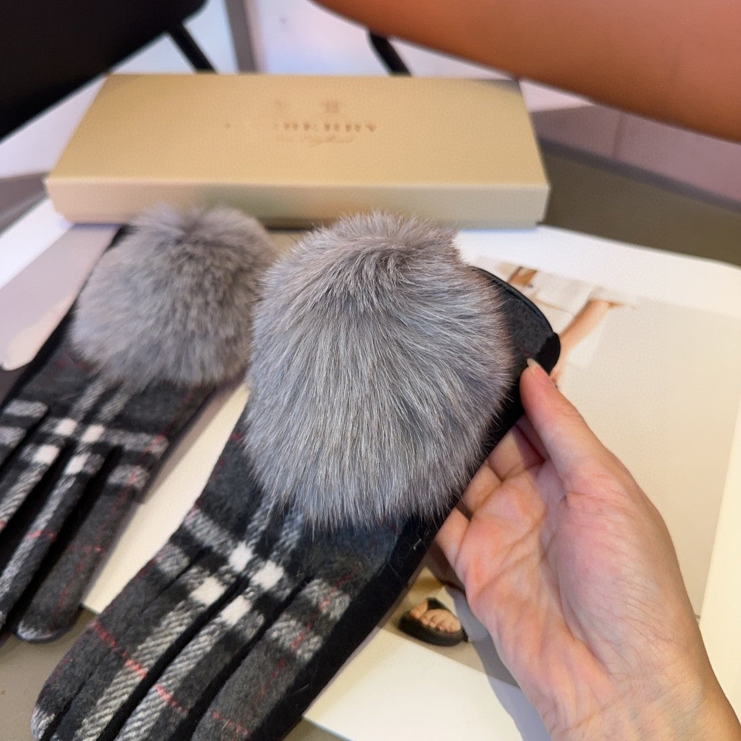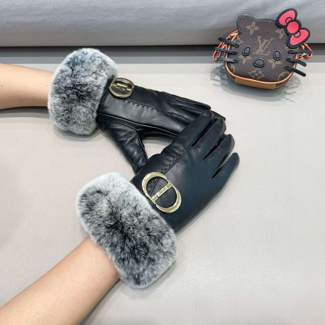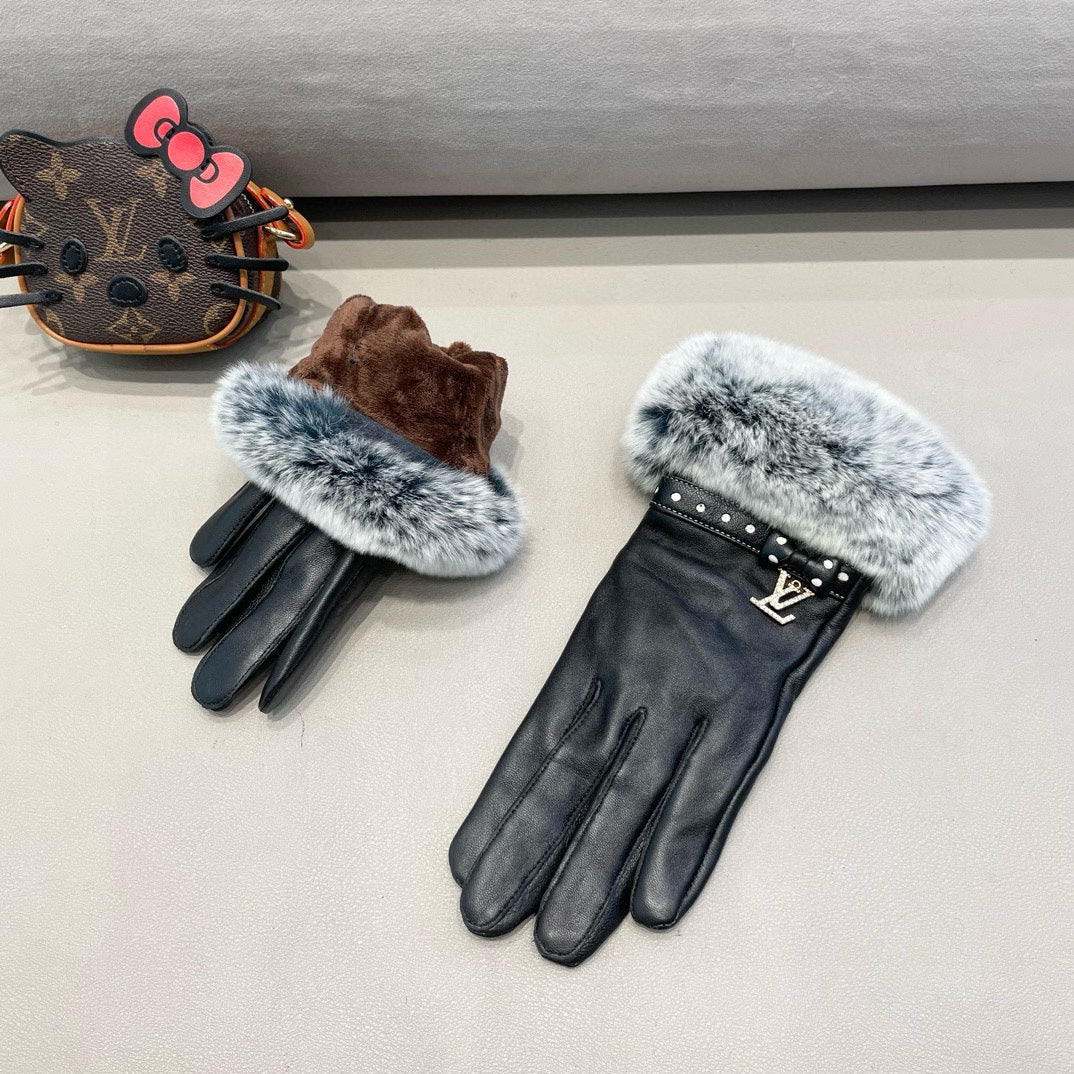 LV GLOVES IN BLACK LAMBSKIN WITH RABBIT FUR 462407