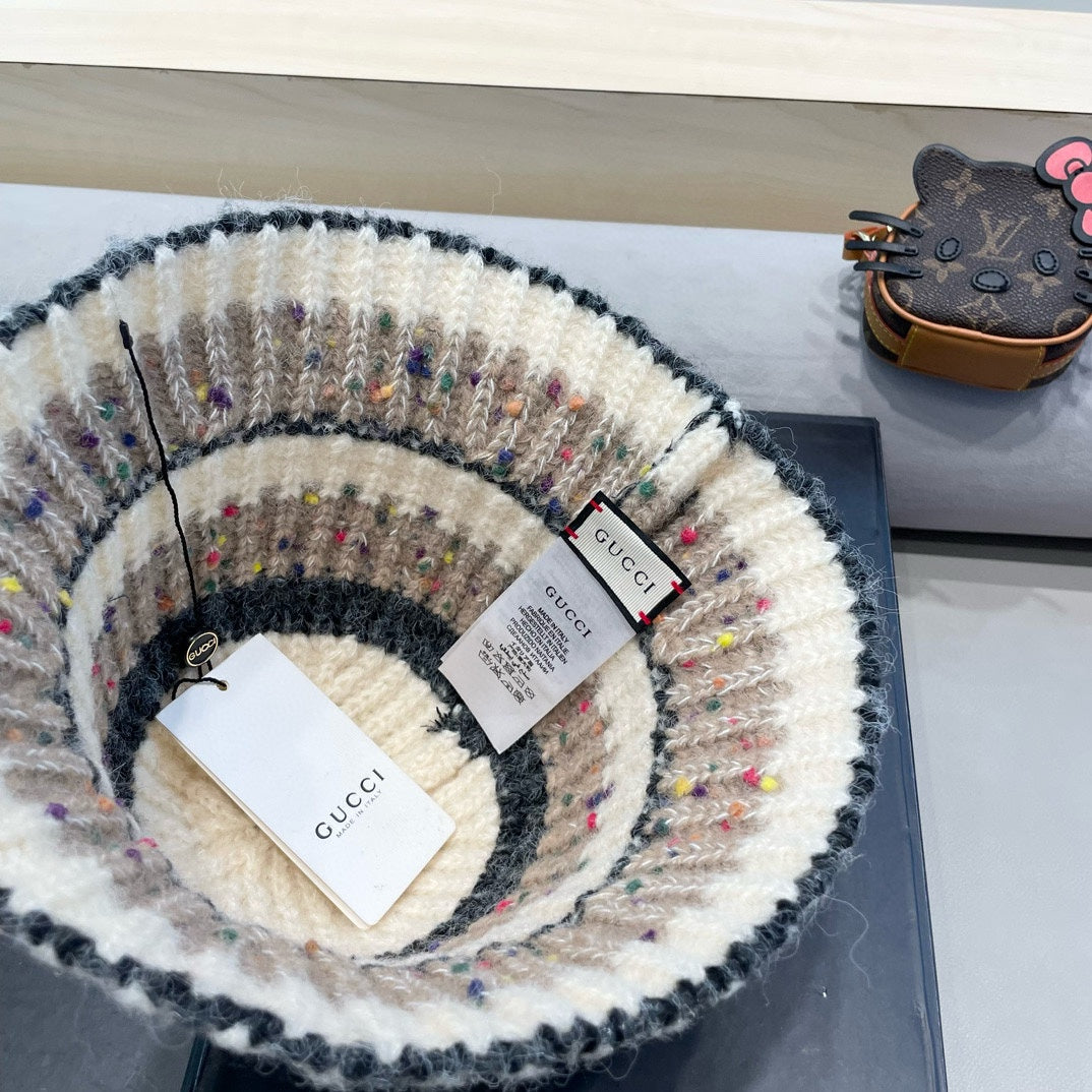 KNIT BUCKET HAT IN WHITE MIX BLACK WOOL 431638
