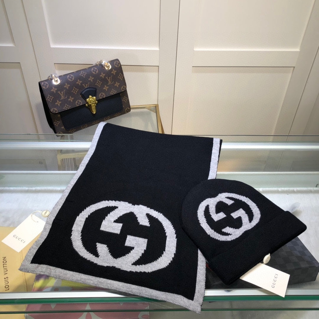 SET CLASSIC SCARF AND HAT IN BLACK MONOGRAM CASHMERE 200522