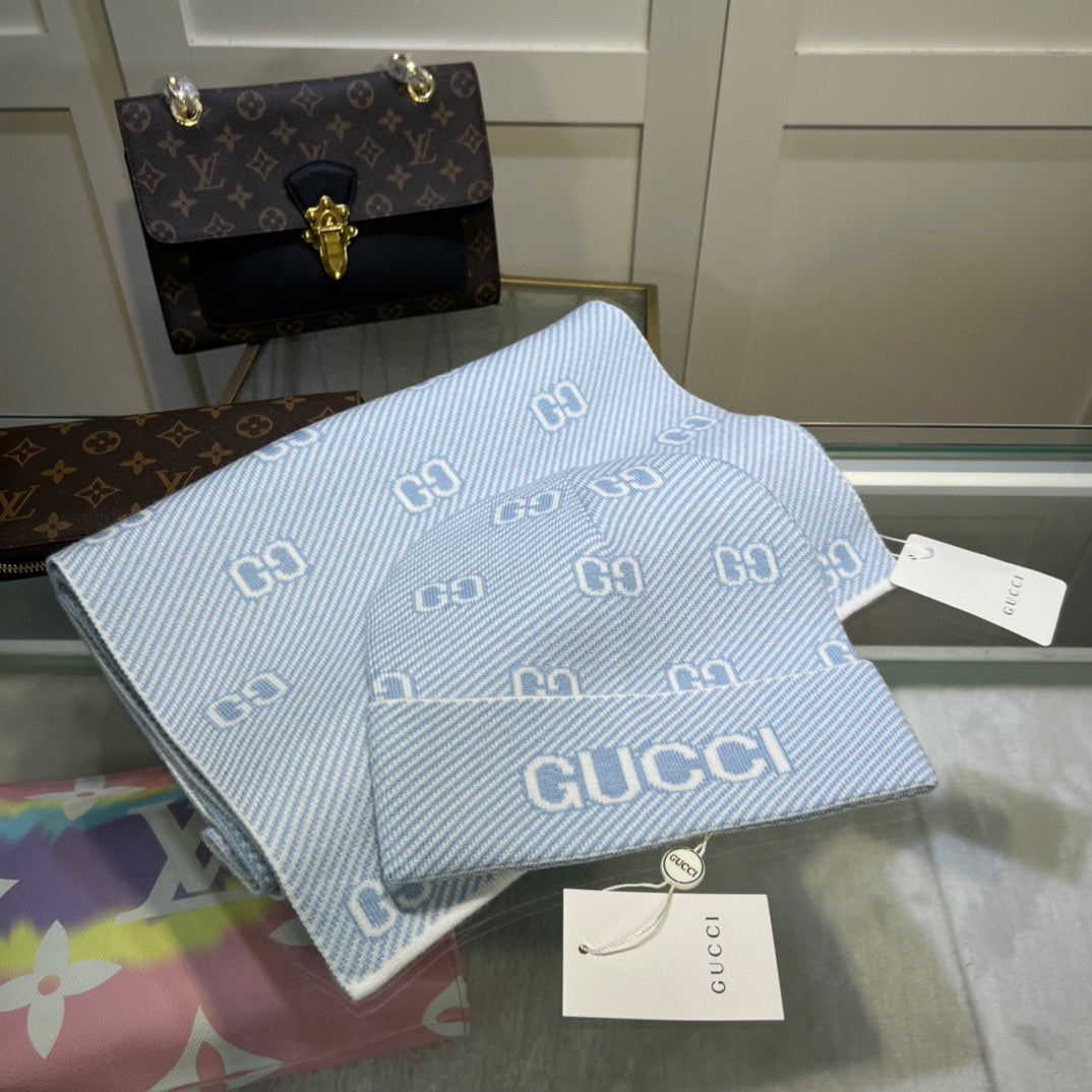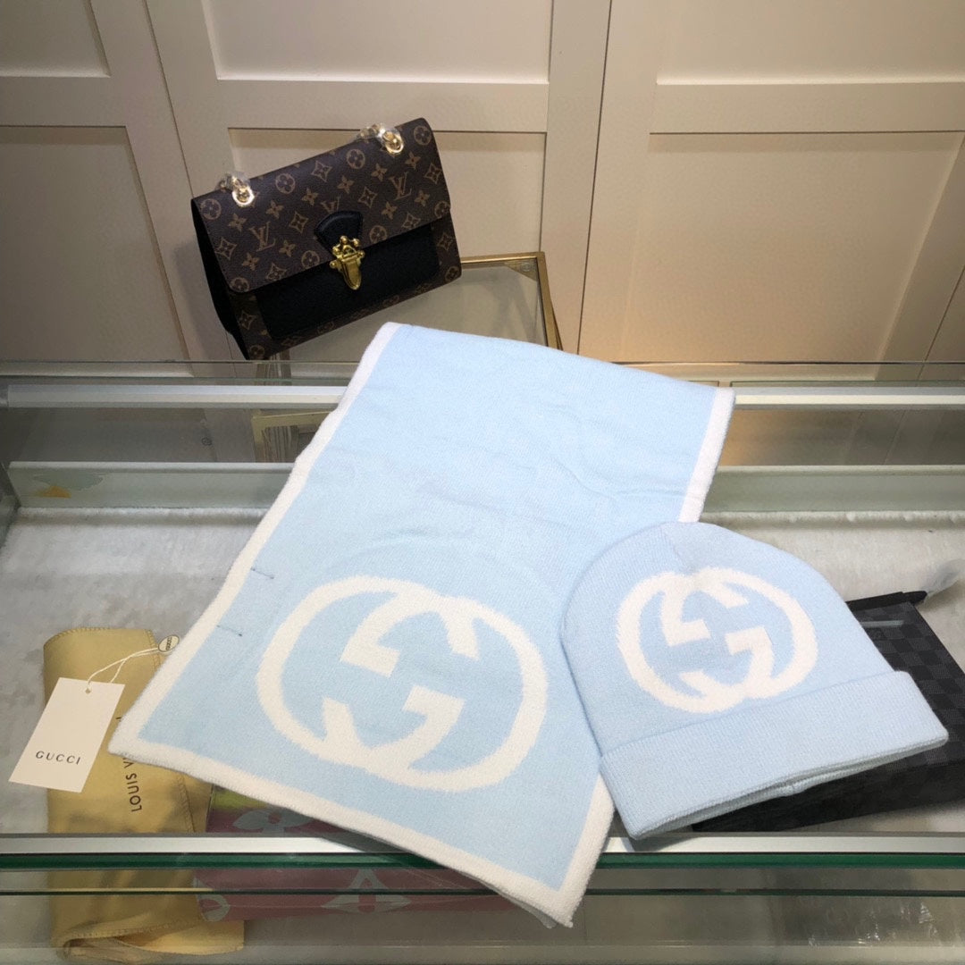 SET SCARF AND HAT IN LIGHT BLUE MIX WHITE WOOL AND CASHMERE 946331