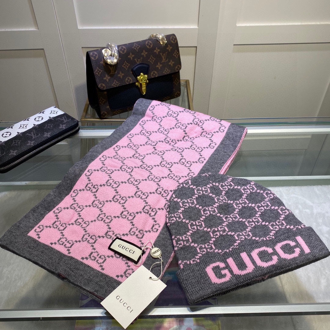 SET CLASSIC SCARF AND HAT IN BABY PINK MONOGRAM CASHMERE 200522