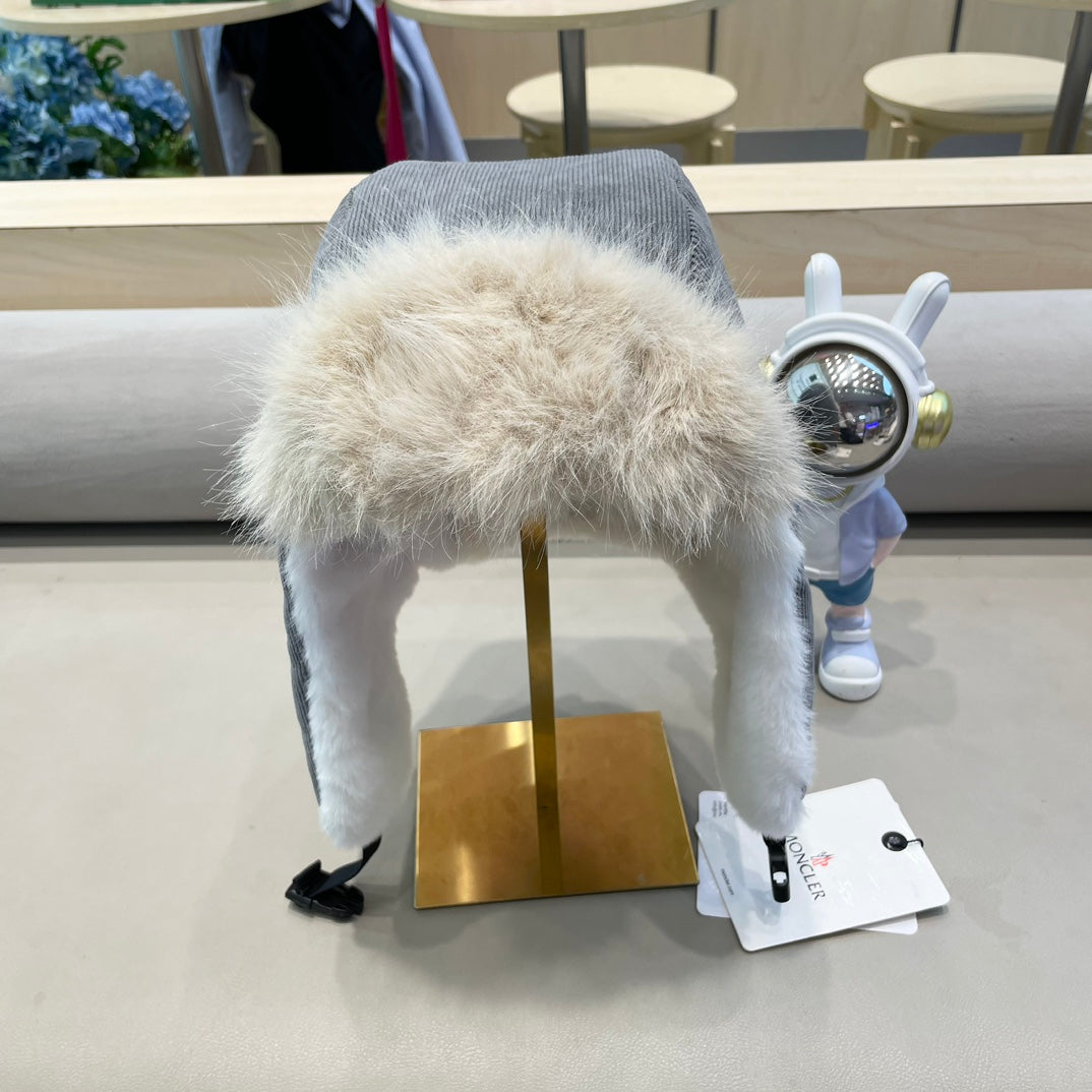AVATOR HAT IN STEEL GRAY CORDUROY AND FLEECE-LINED 434983