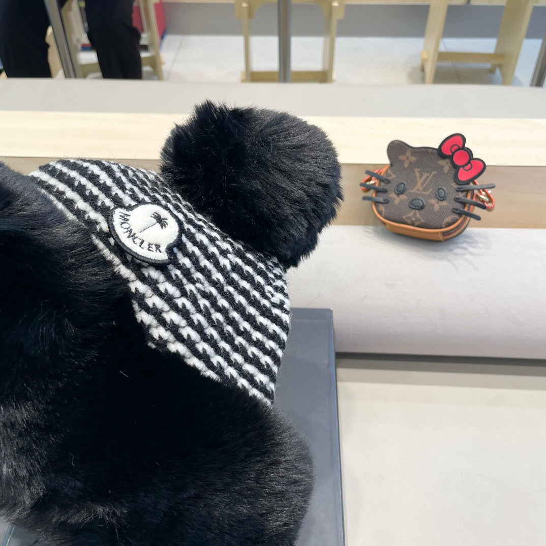 KNITTED BEANIE HAT IN BLACK WOOL AND RABBIT FUR 439678