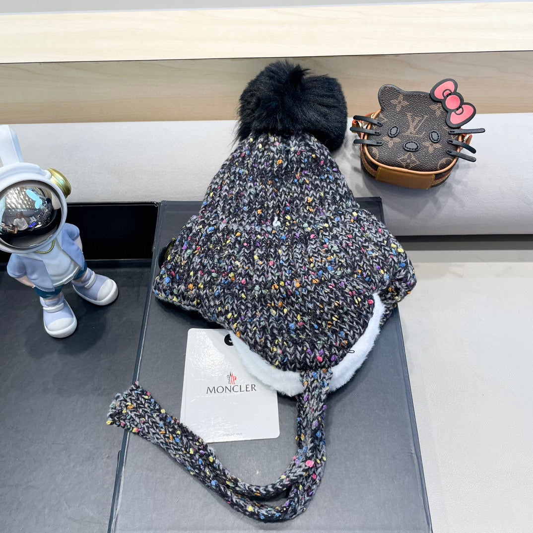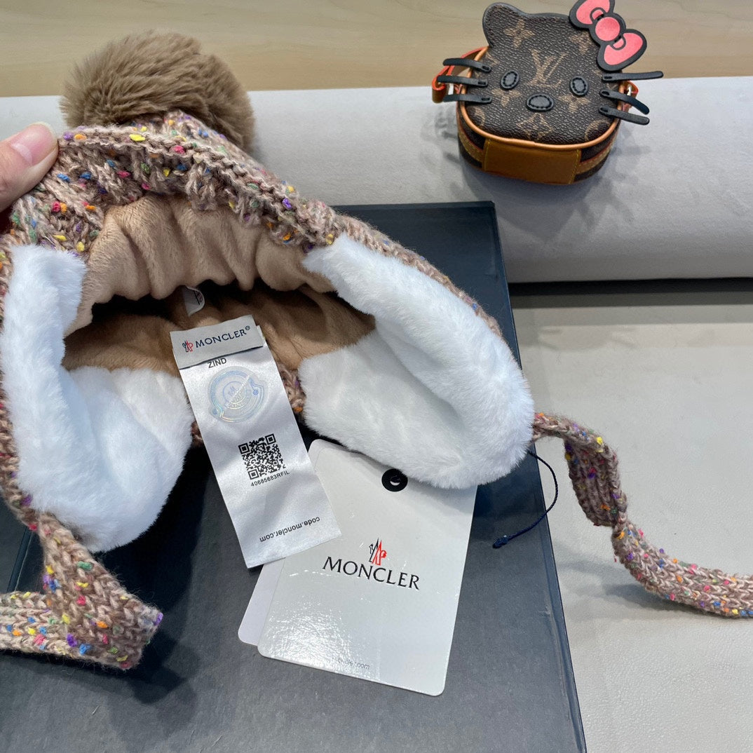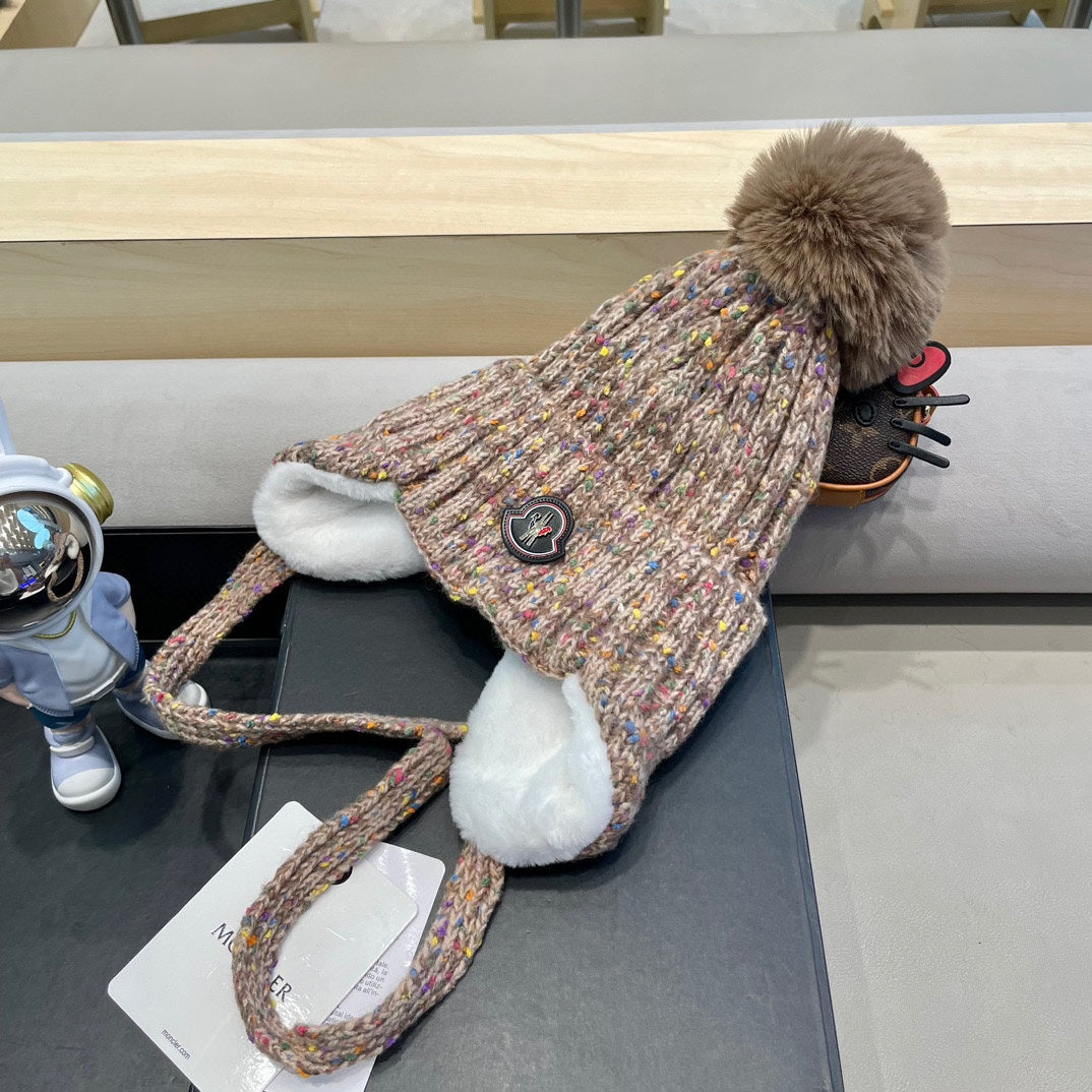 KNITTED TRAPPER HAT IN BEIGE WOOL 439524