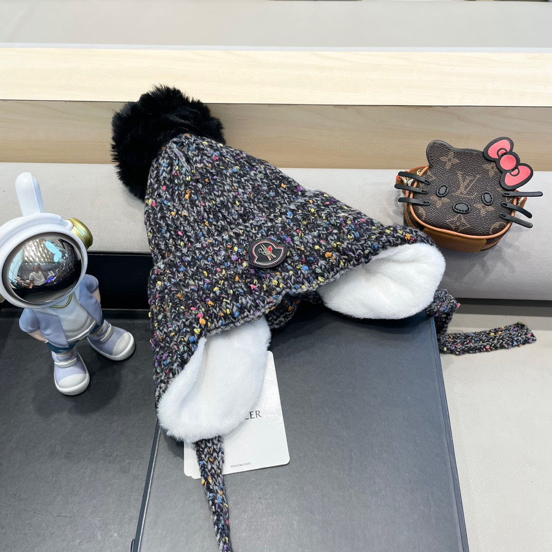 KNITTED TRAPPER HAT IN GRAY WOOL 439525