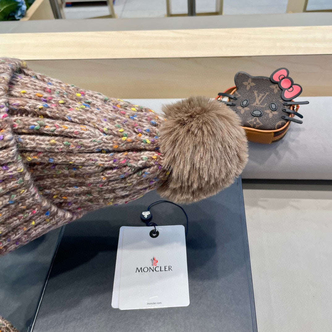 KNITTED BEANIE HAT IN LIGHT GRAY WOOL AND RABBIT FUR 439675