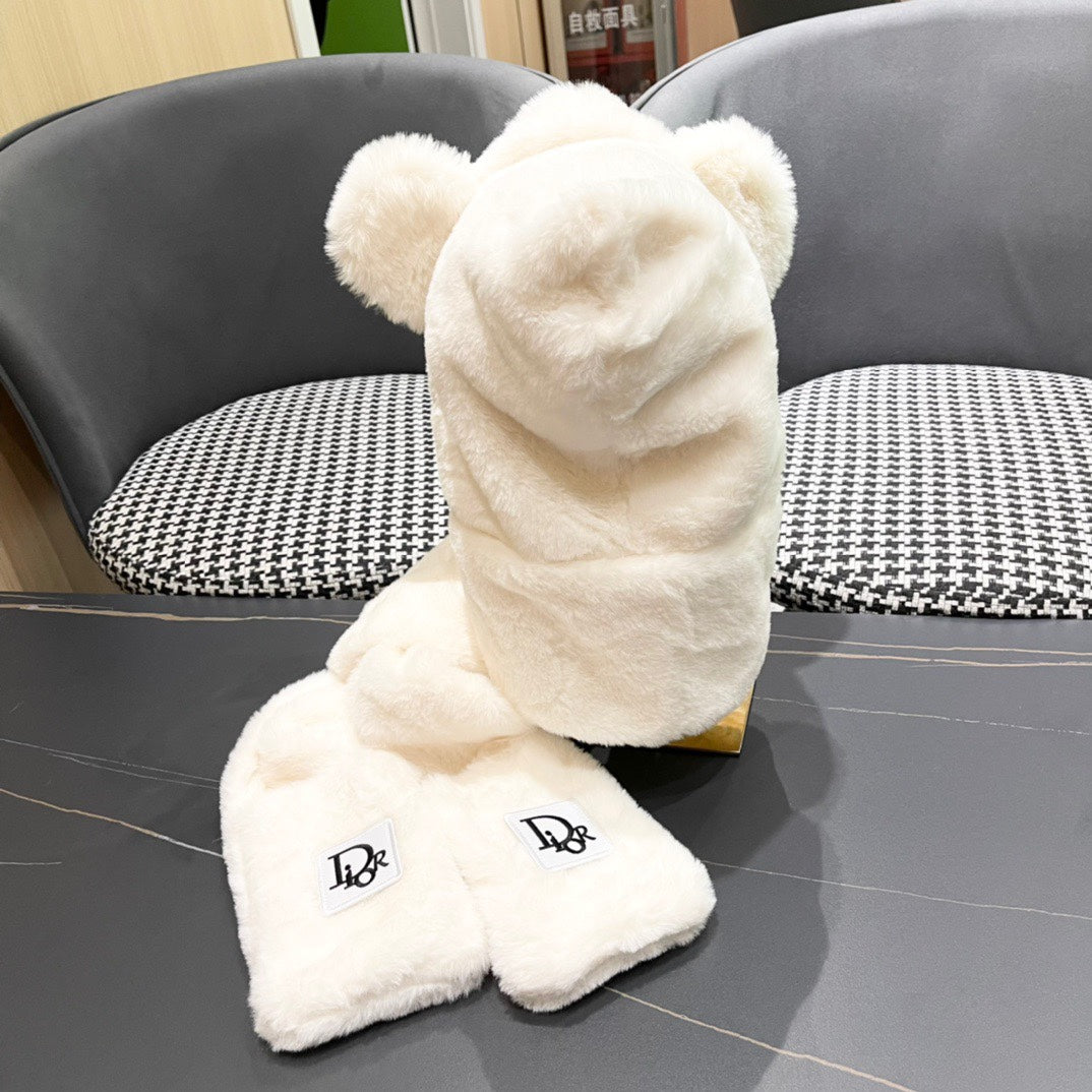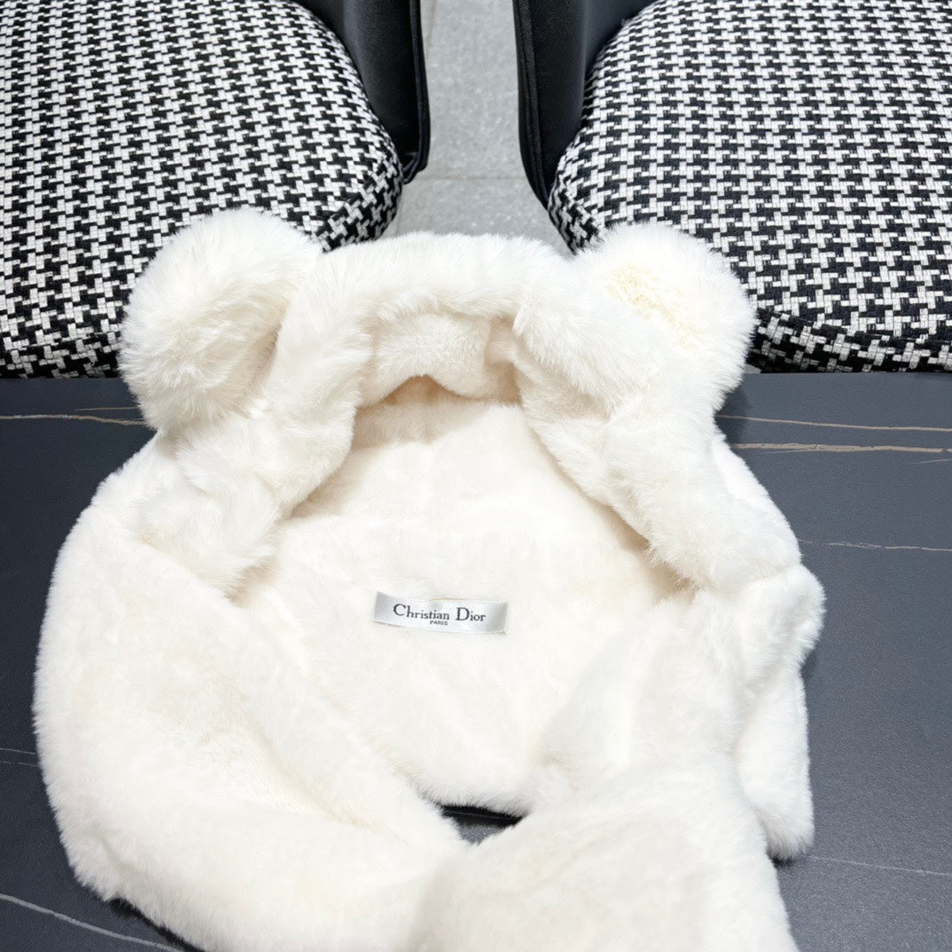 PLUSH WARM HAT IN BEIGE RABBIT FUR WITH FOX EARS 439588