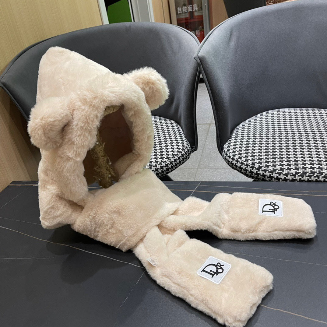 PLUSH WARM HAT IN TUSCAN BEIGE RABBIT FUR WITH FOX EARS 439585