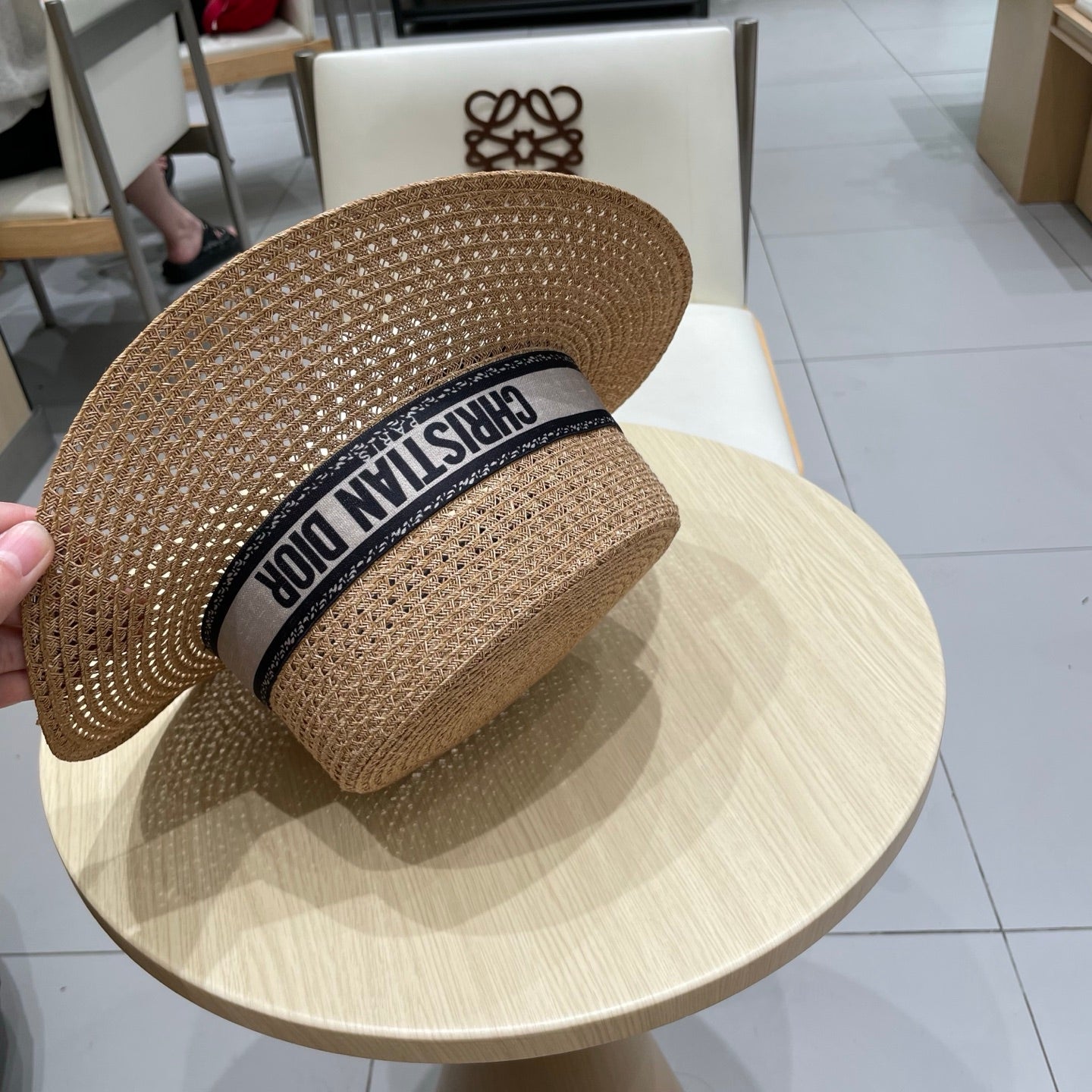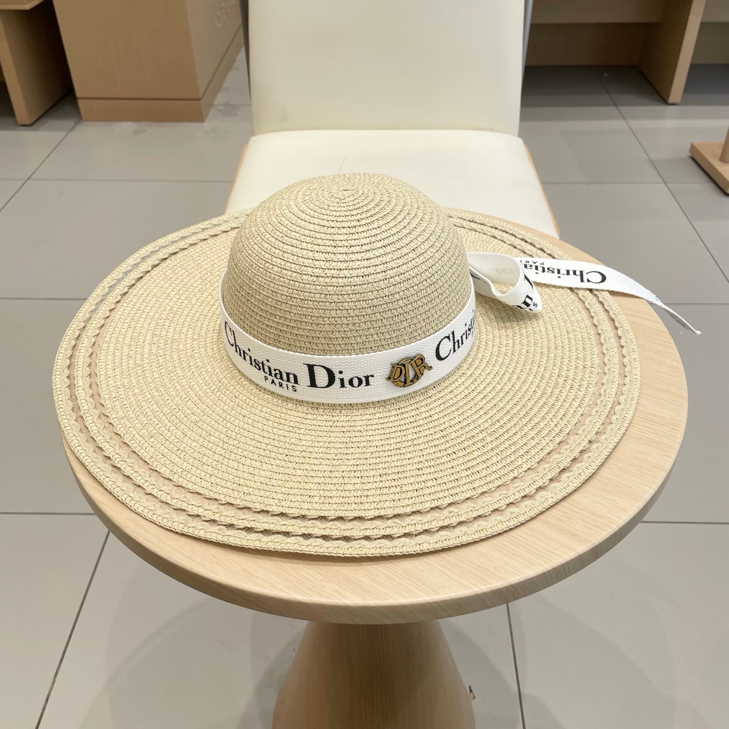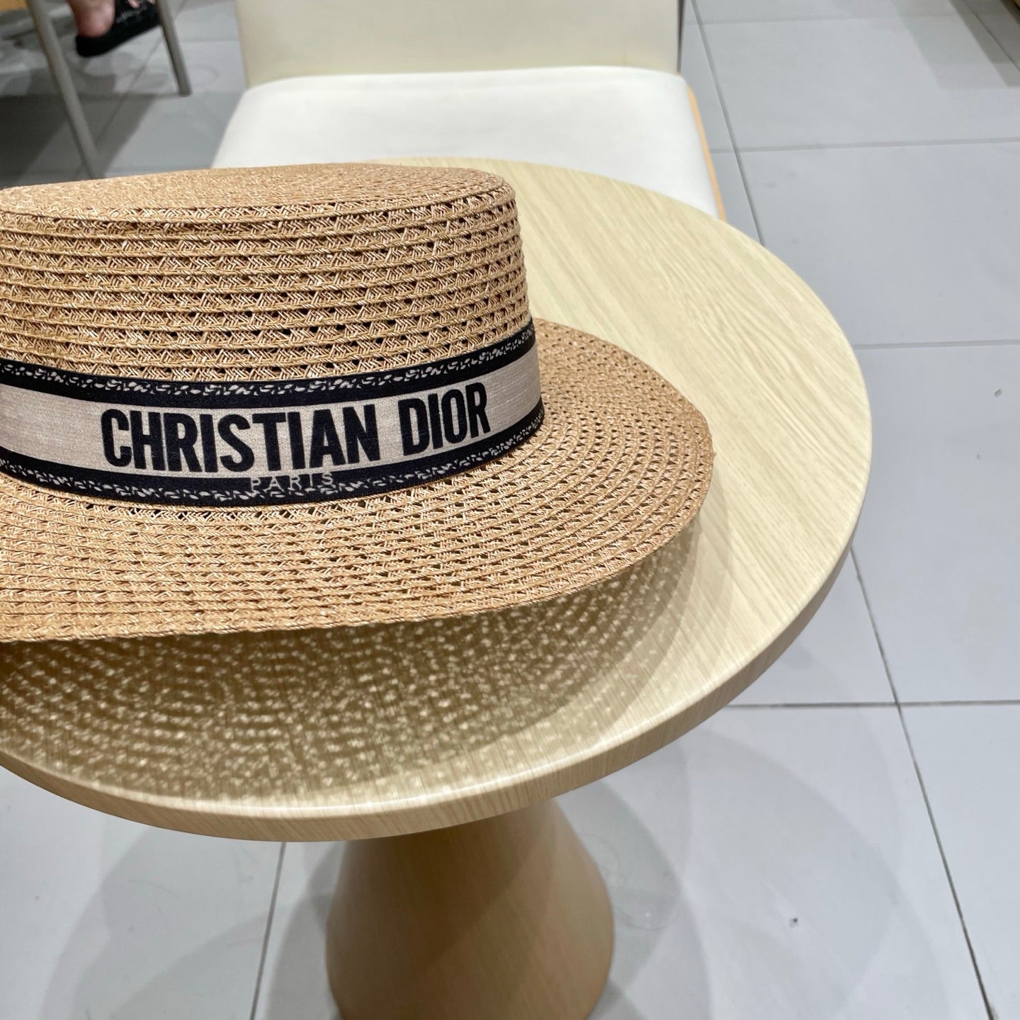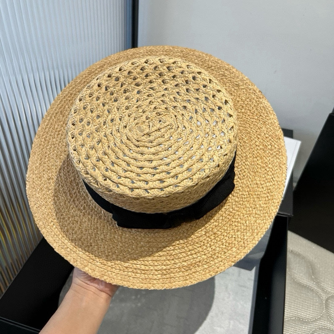 BOATER HAT IN LIGHT BEIGE RAFFIA