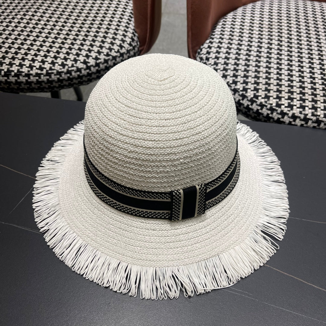 HAT IN CREAM WHITE RAFFIA MIX LACE FABRIC