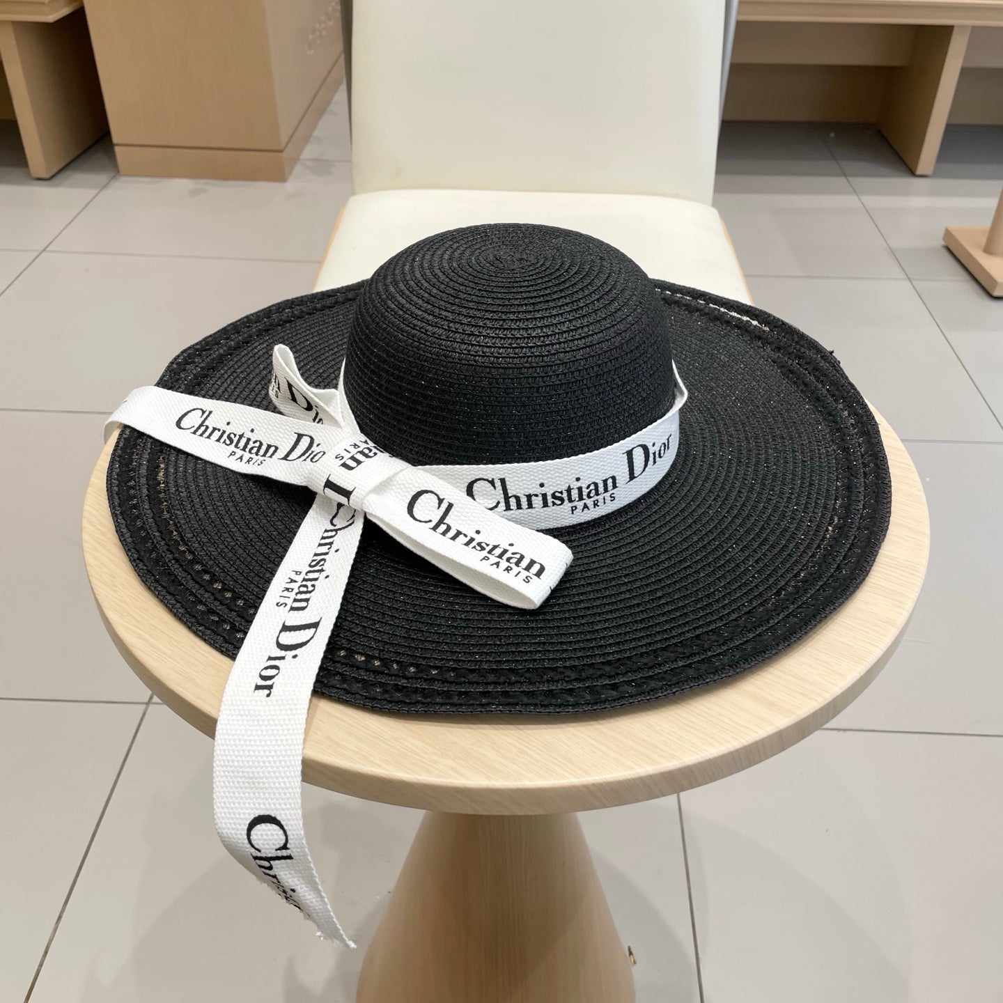 HAT IN BLACK RAFFIA WIDE-BRIM MIX BIG WHITE BOW
