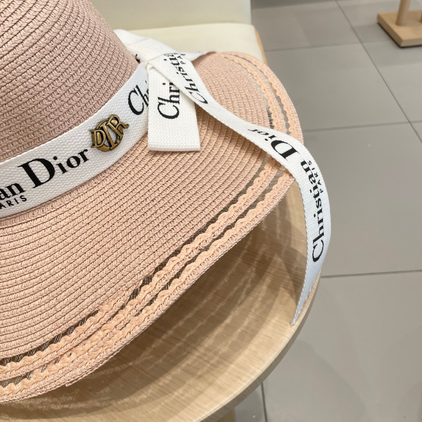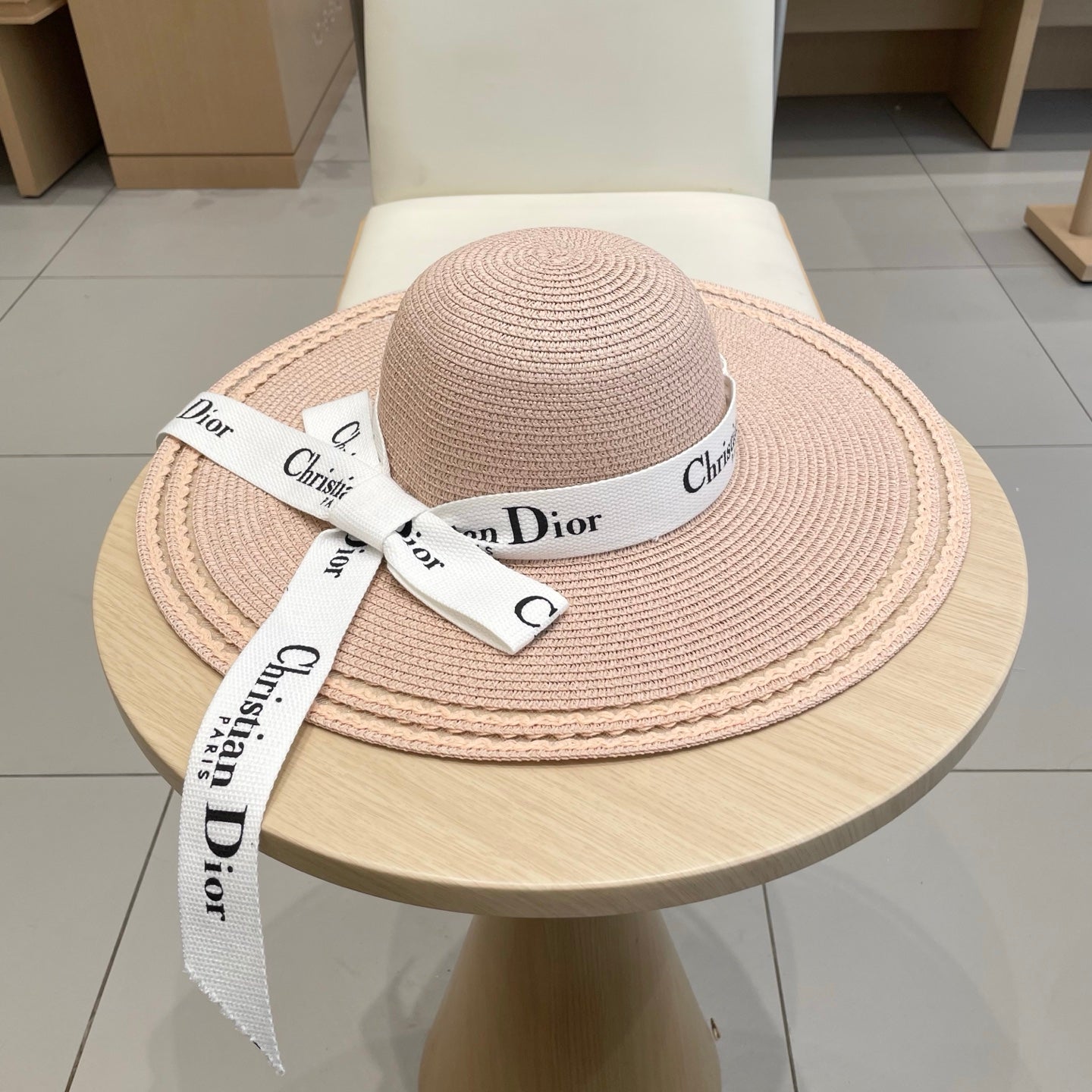 HAT IN LIGHT PINK BEIGE RAFFIA WIDE-BRIM MIX BIG WHITE BOW