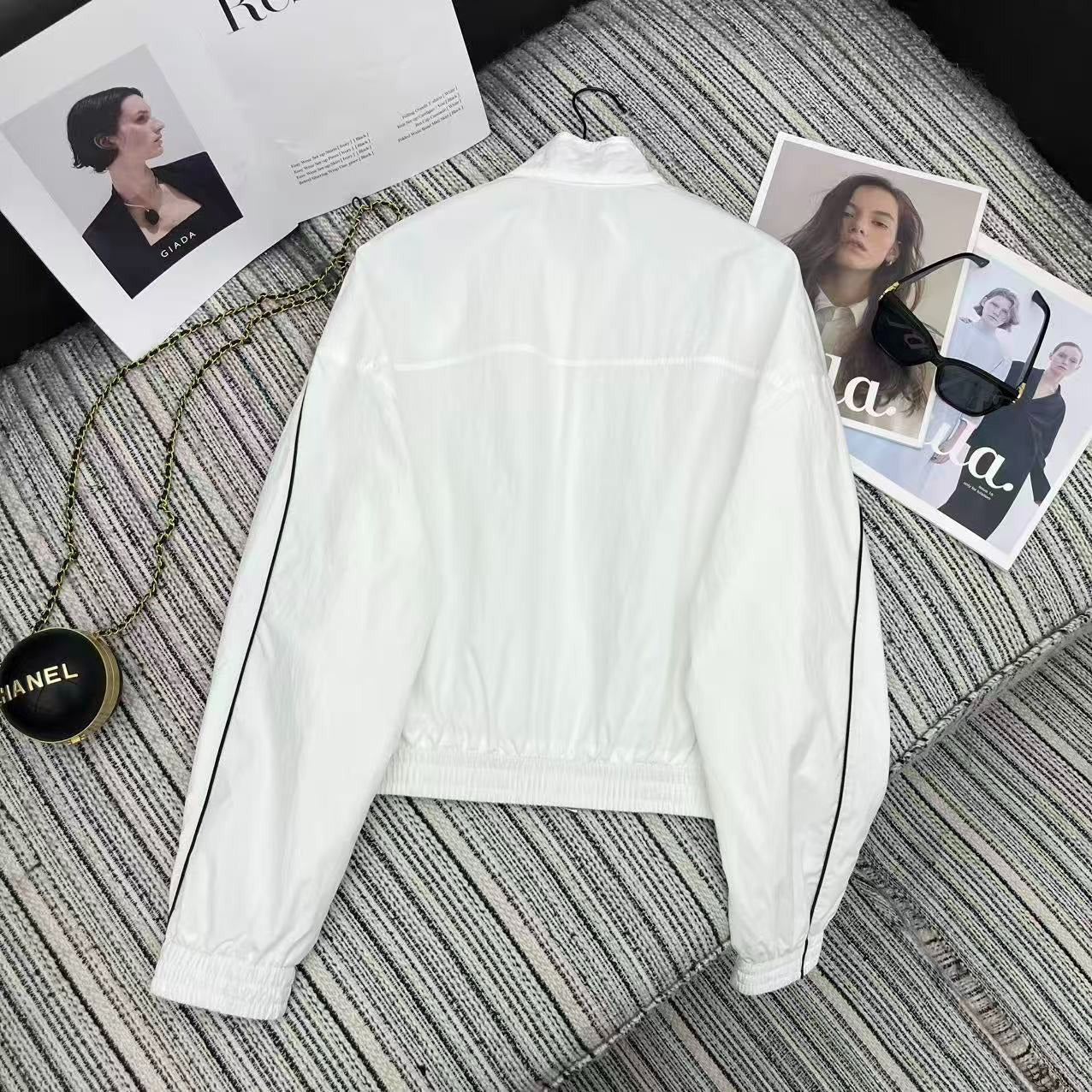 Prada 25 Mid-length Hooded Coat White Black Wool 637352