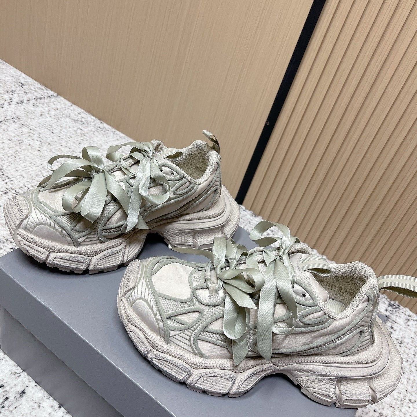 Balenciaga Sneaker Mesh Lace-up Cream Gray Fabric 534182