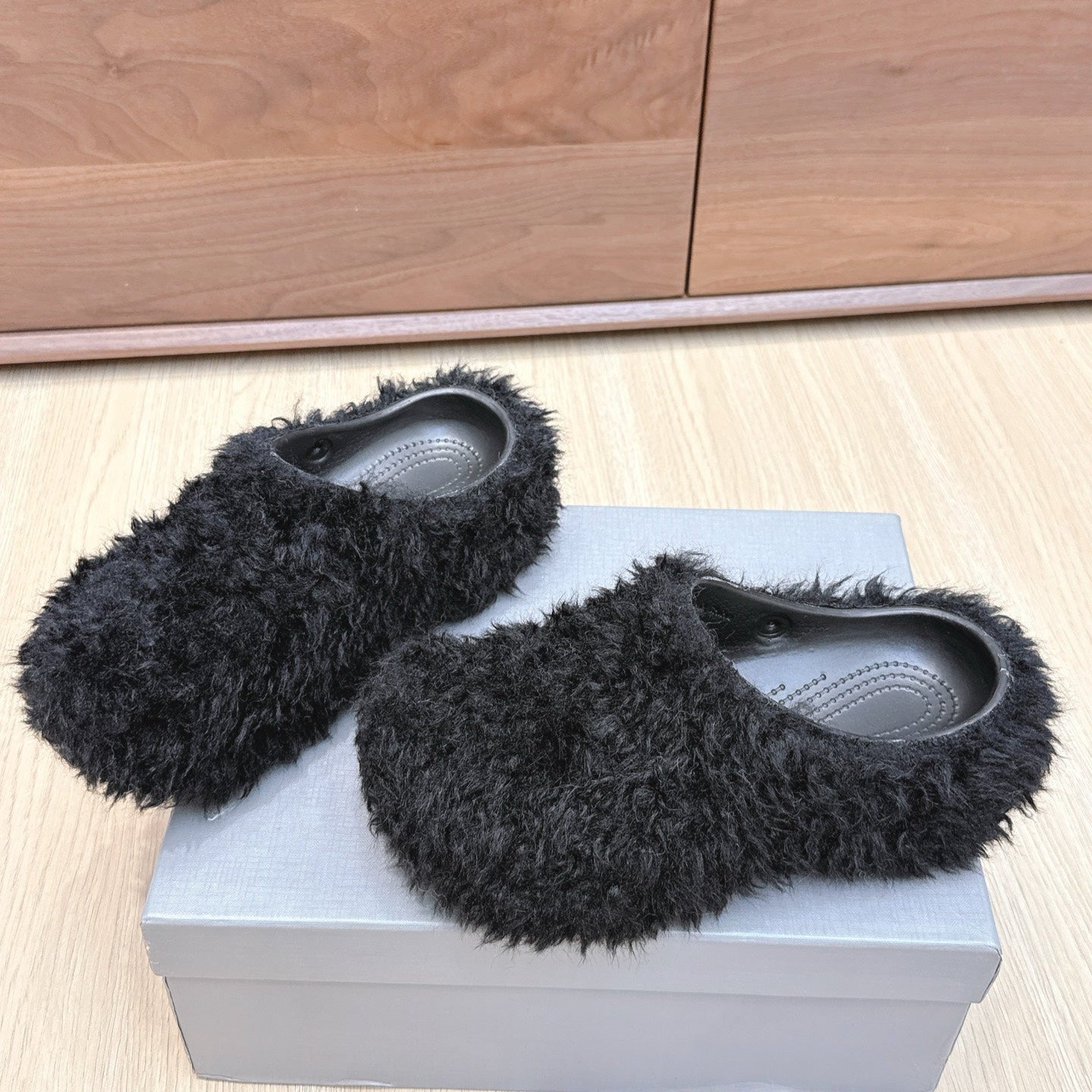 Balenciaga Classic Buckle Slippers Black Wool 535030