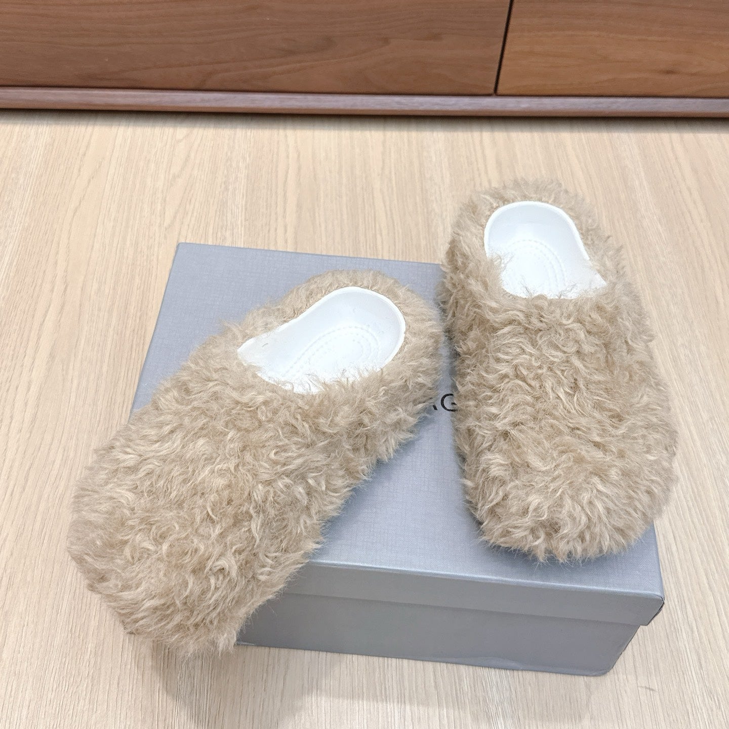 Balenciaga Classic Buckle Slippers White Brown Wool 535029