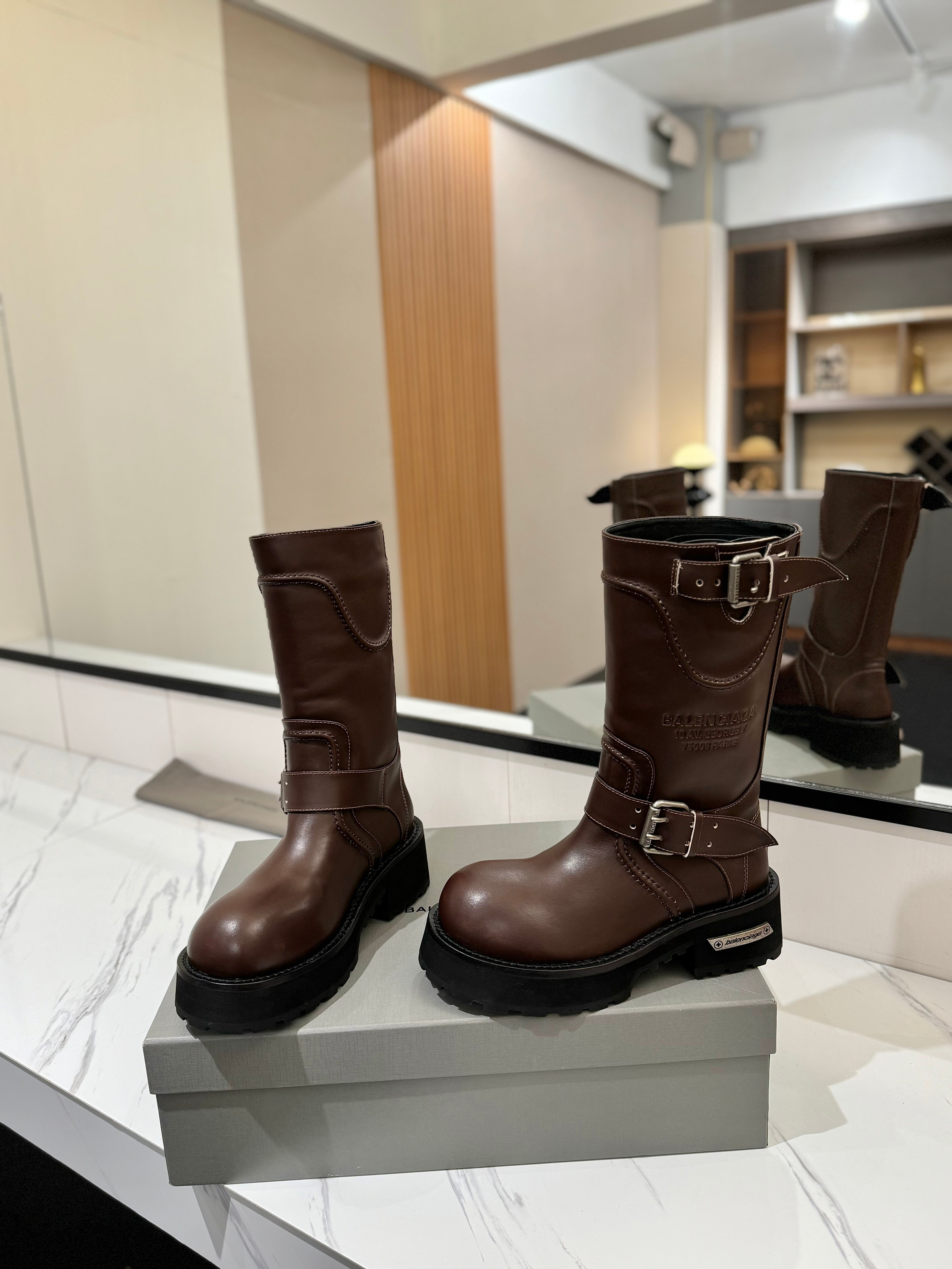 Balenciaga 25s buckled mid-calf boots brown calfskin 467614