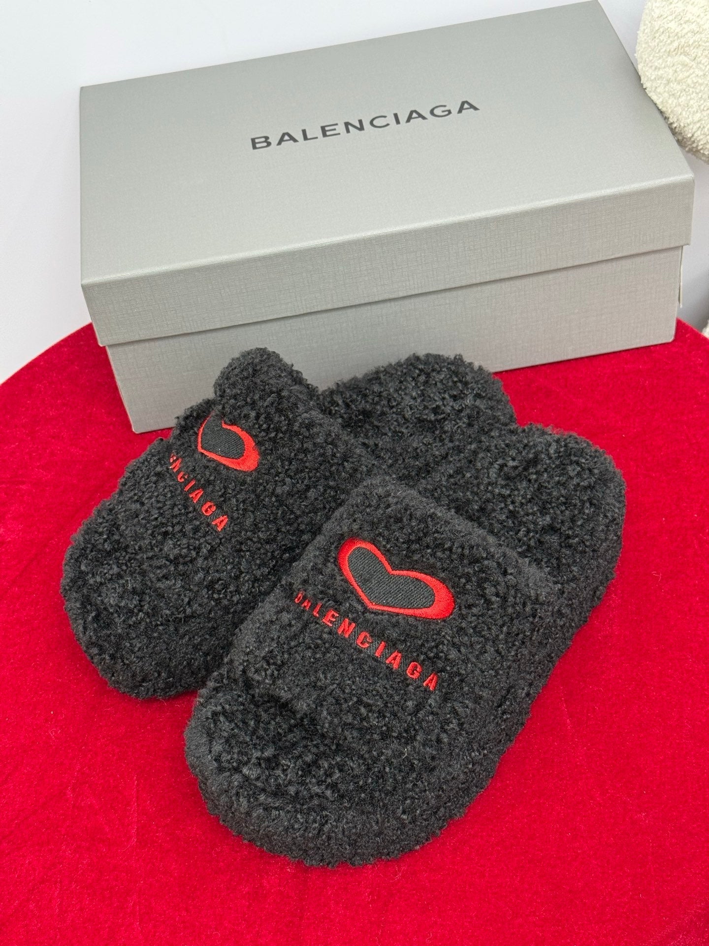 Balenciaga 25s slippers black red wool 467706