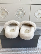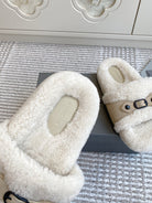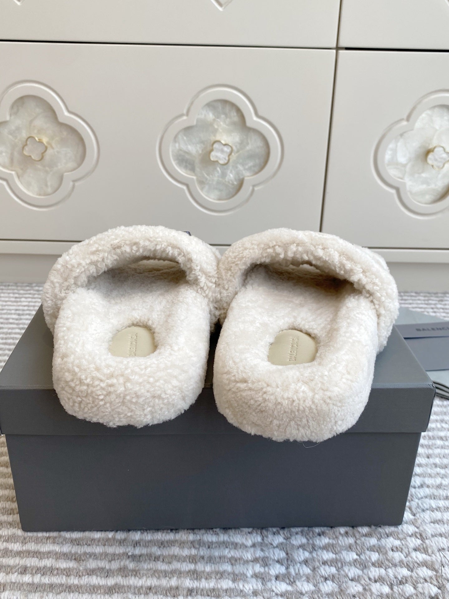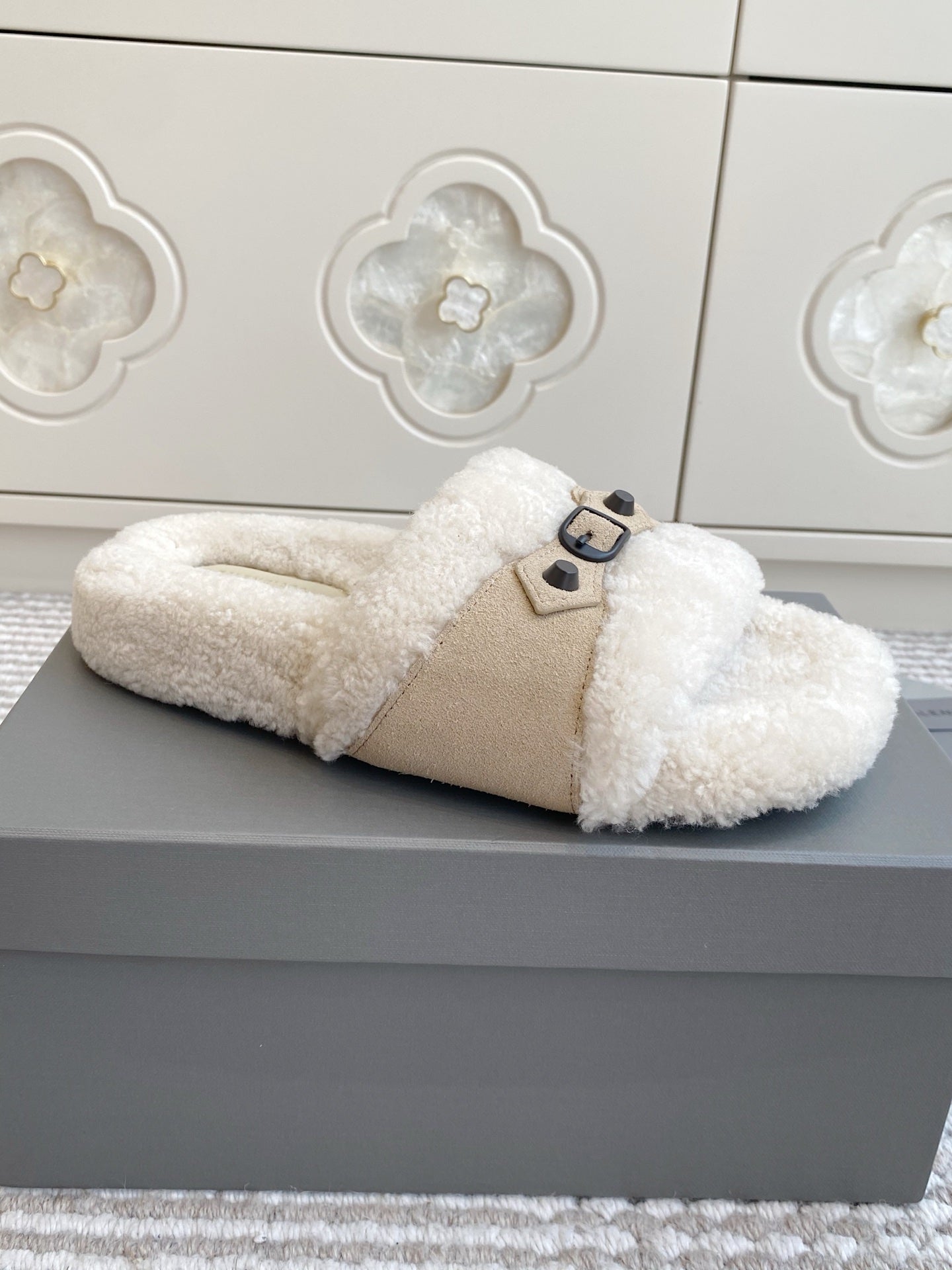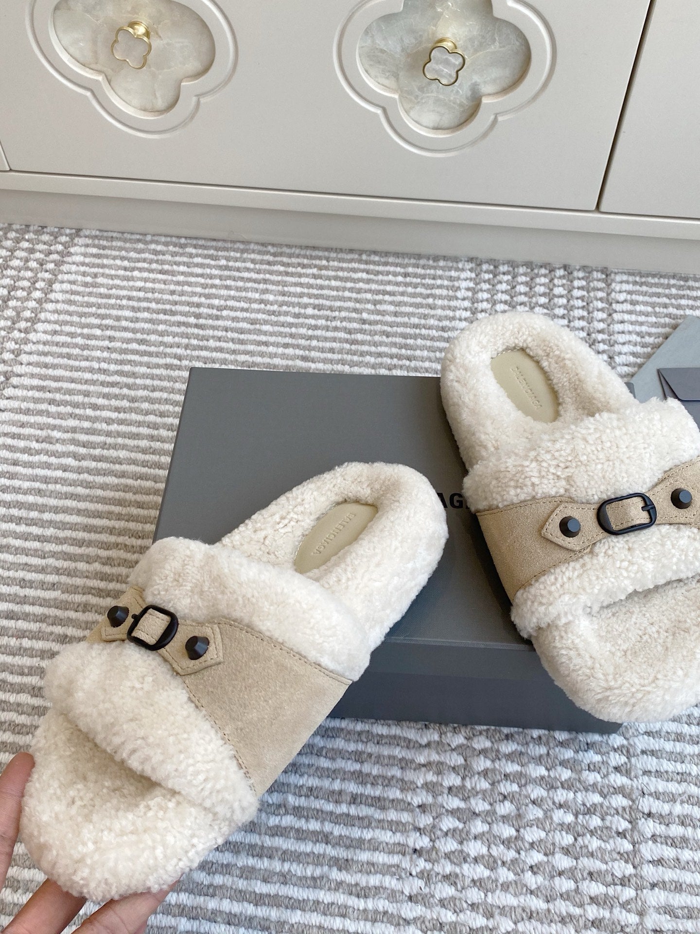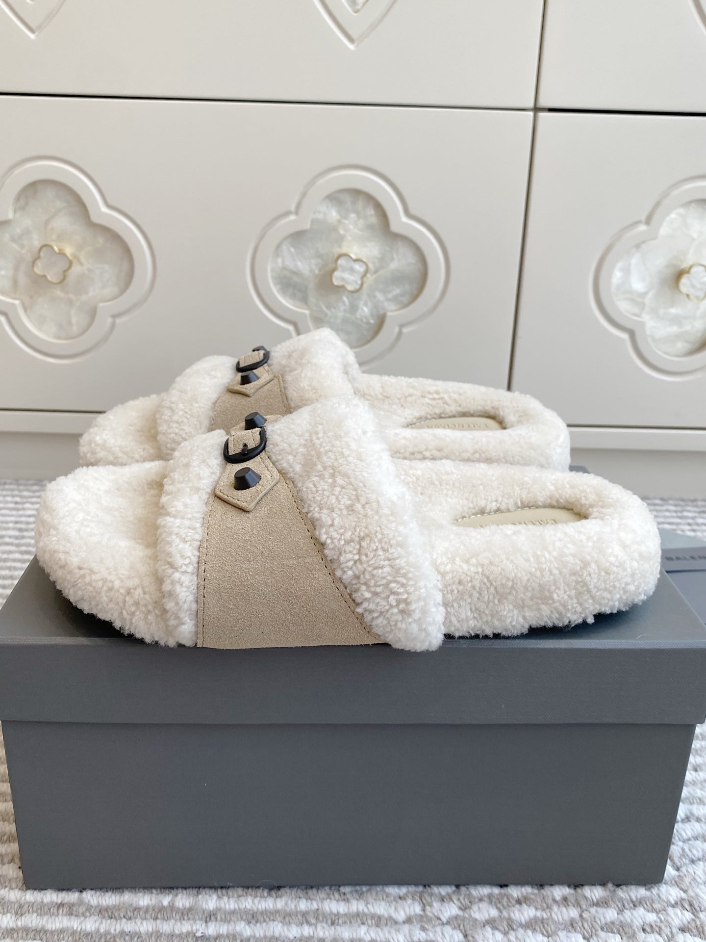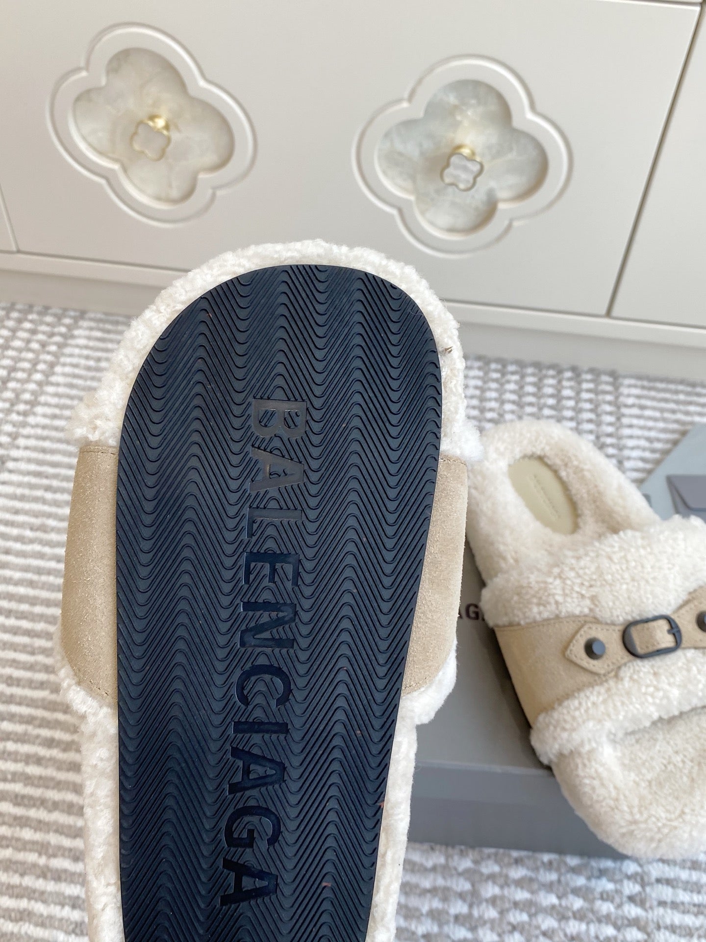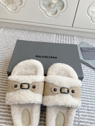 Balenciaga Classic Buckle Slippers White Taupe Wool 543003