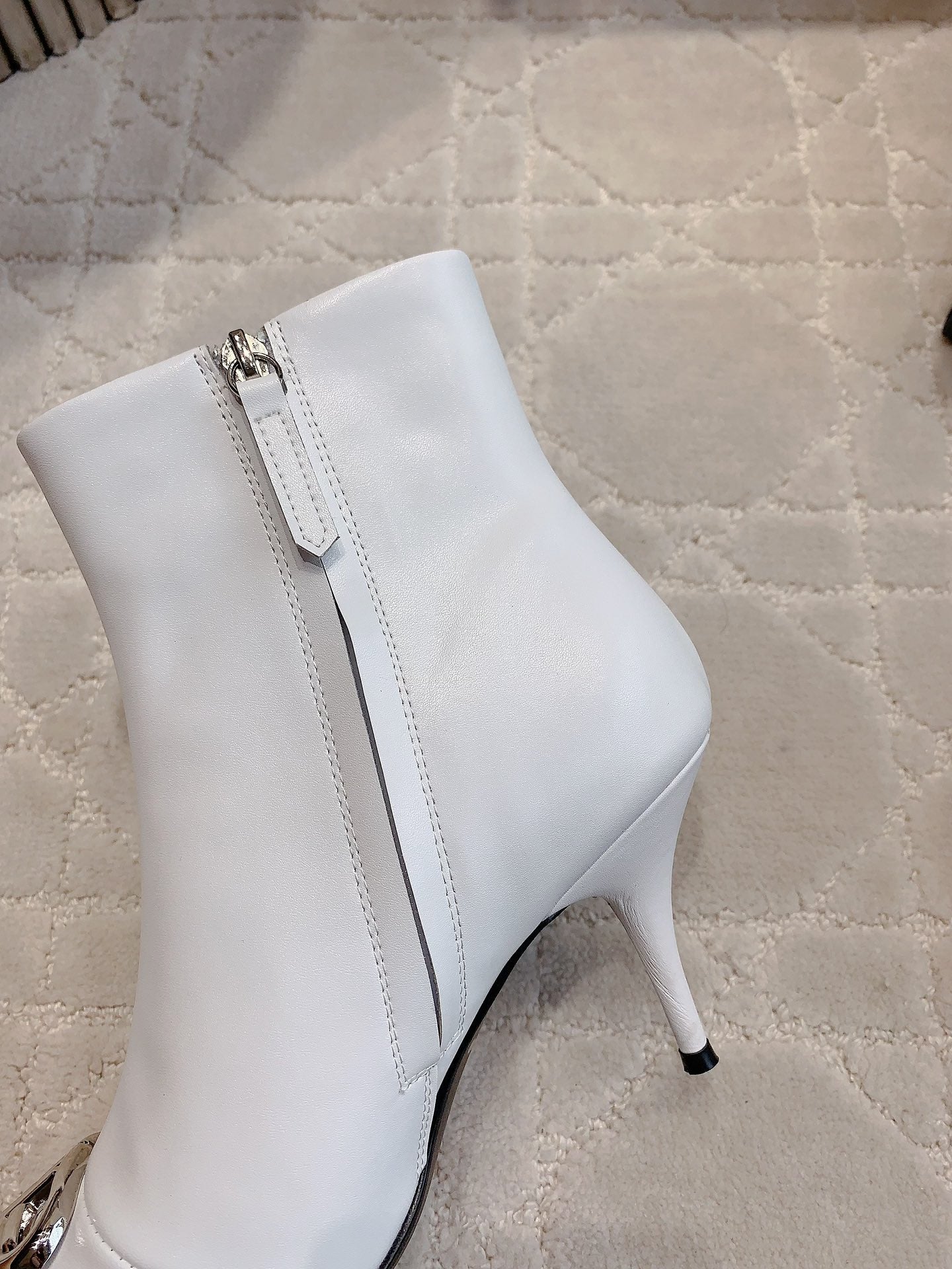 POINTED-TOE HIGH HEEL BOOTS IN WHITE SMOOTH LAMBSKIN