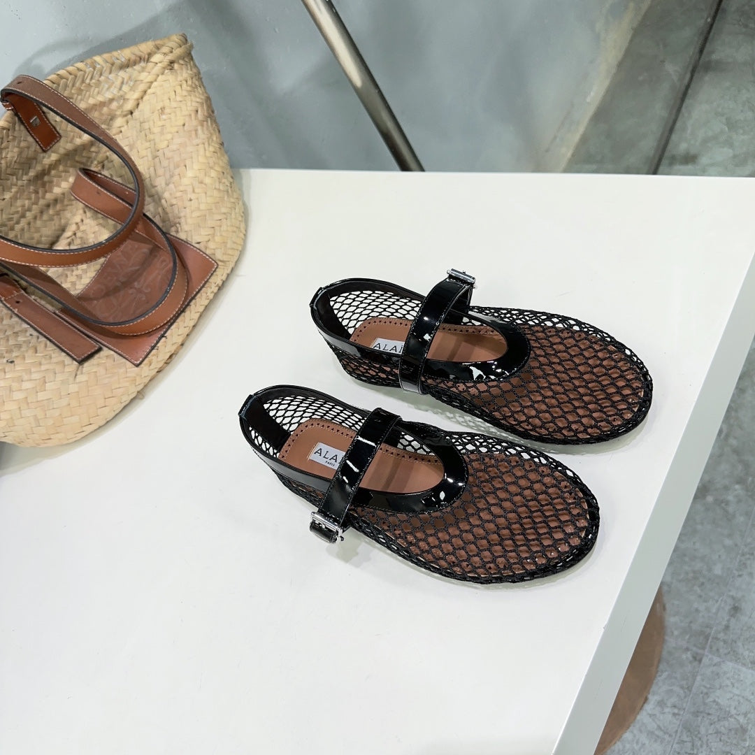 Alaia 25 Laminated Fishnet Ballet Flats Black Lambskin 576444
