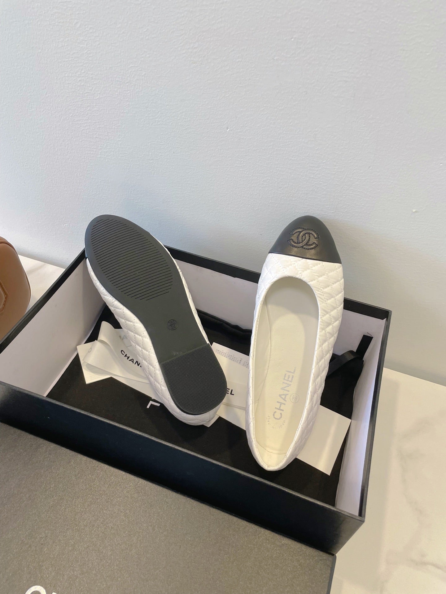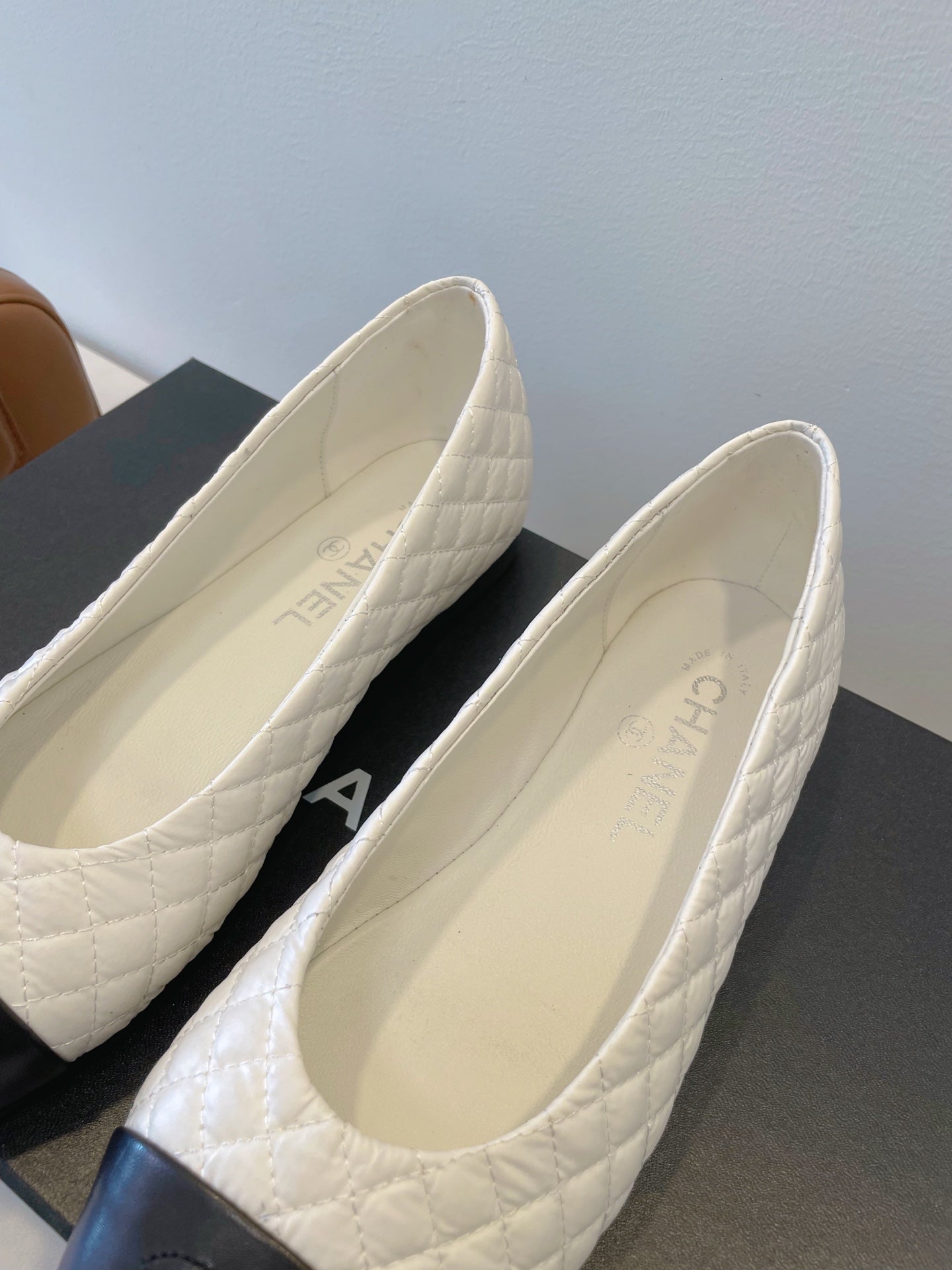 CC 25A Ballet Flat Quited White Black Sheepskin 530542