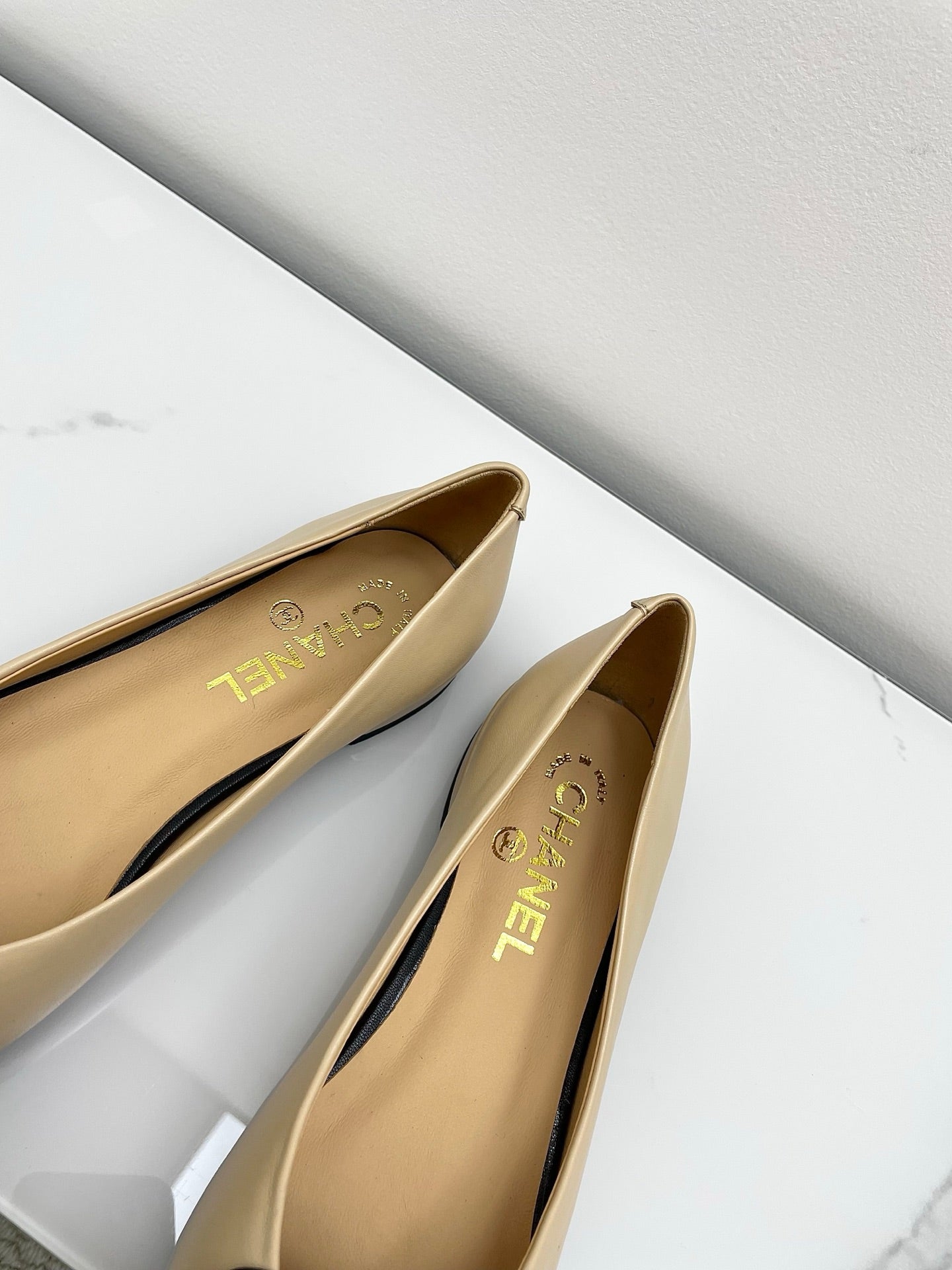 CC Logo Bow with Camellia Ballerina Flats Black Beige Cowhide Sheepskin 427020