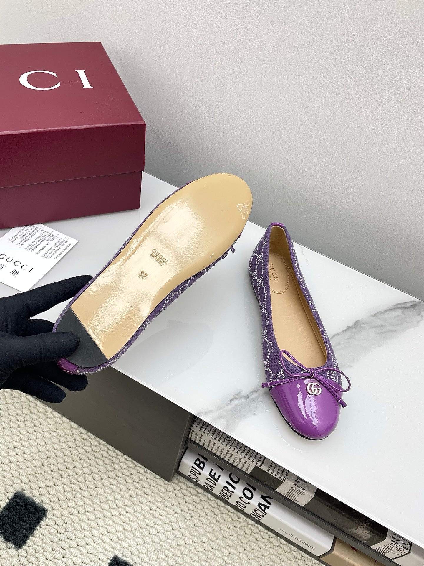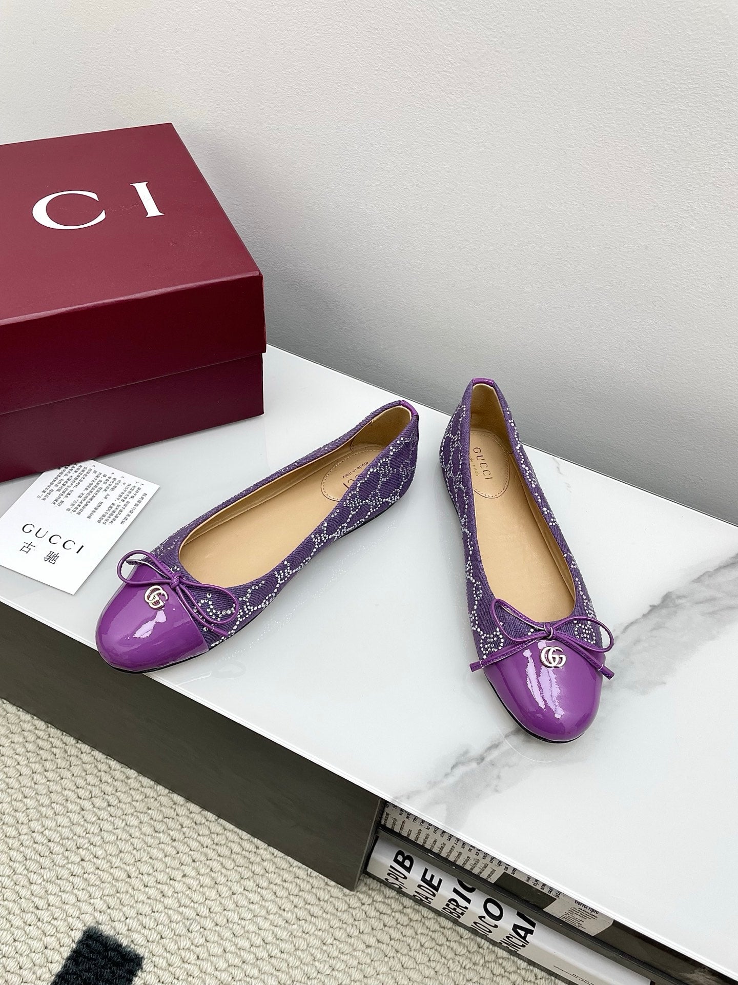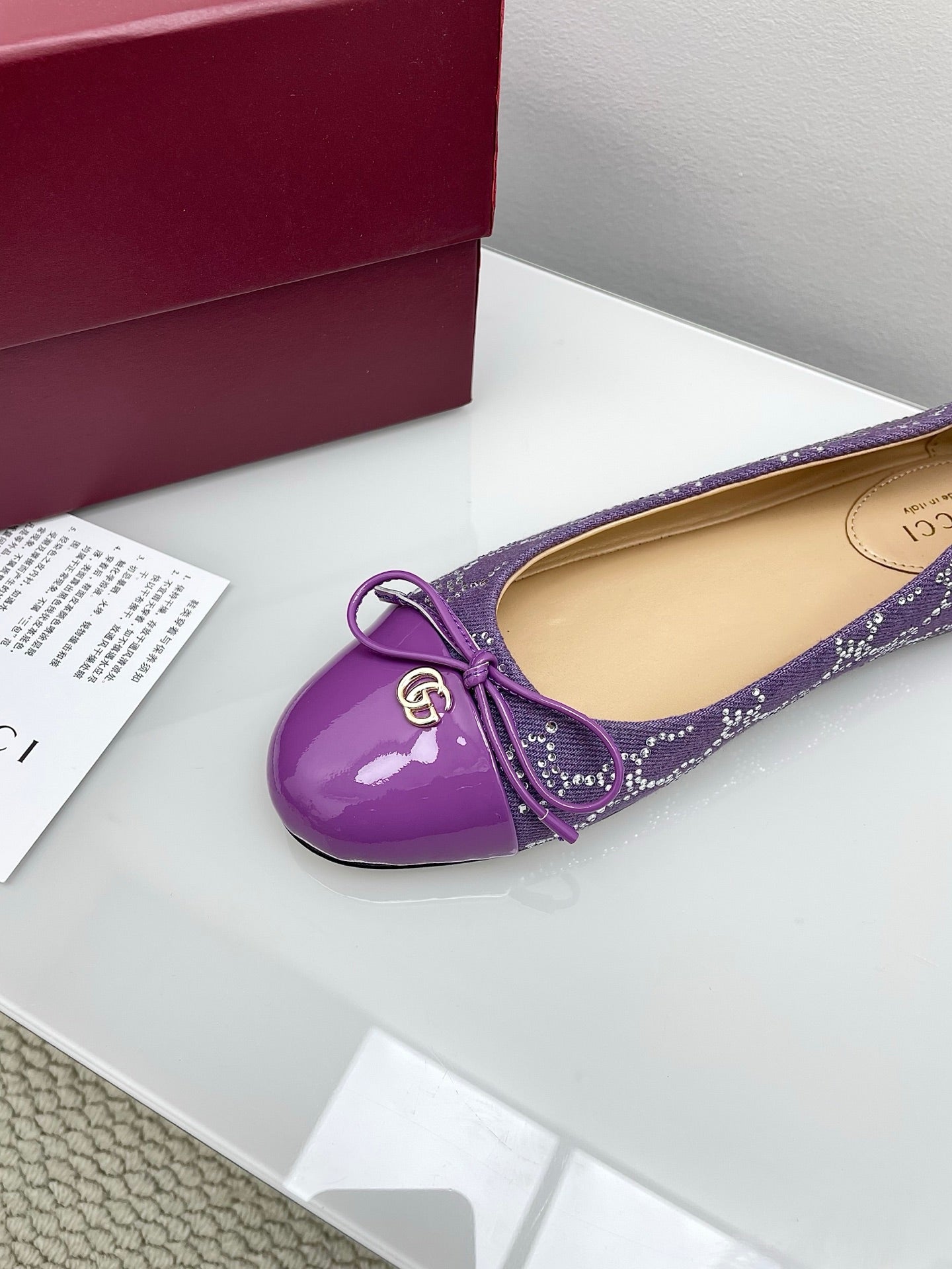 GG Women's Crystal Ballet Flat Purple Denim Patent Leather Trim 511493