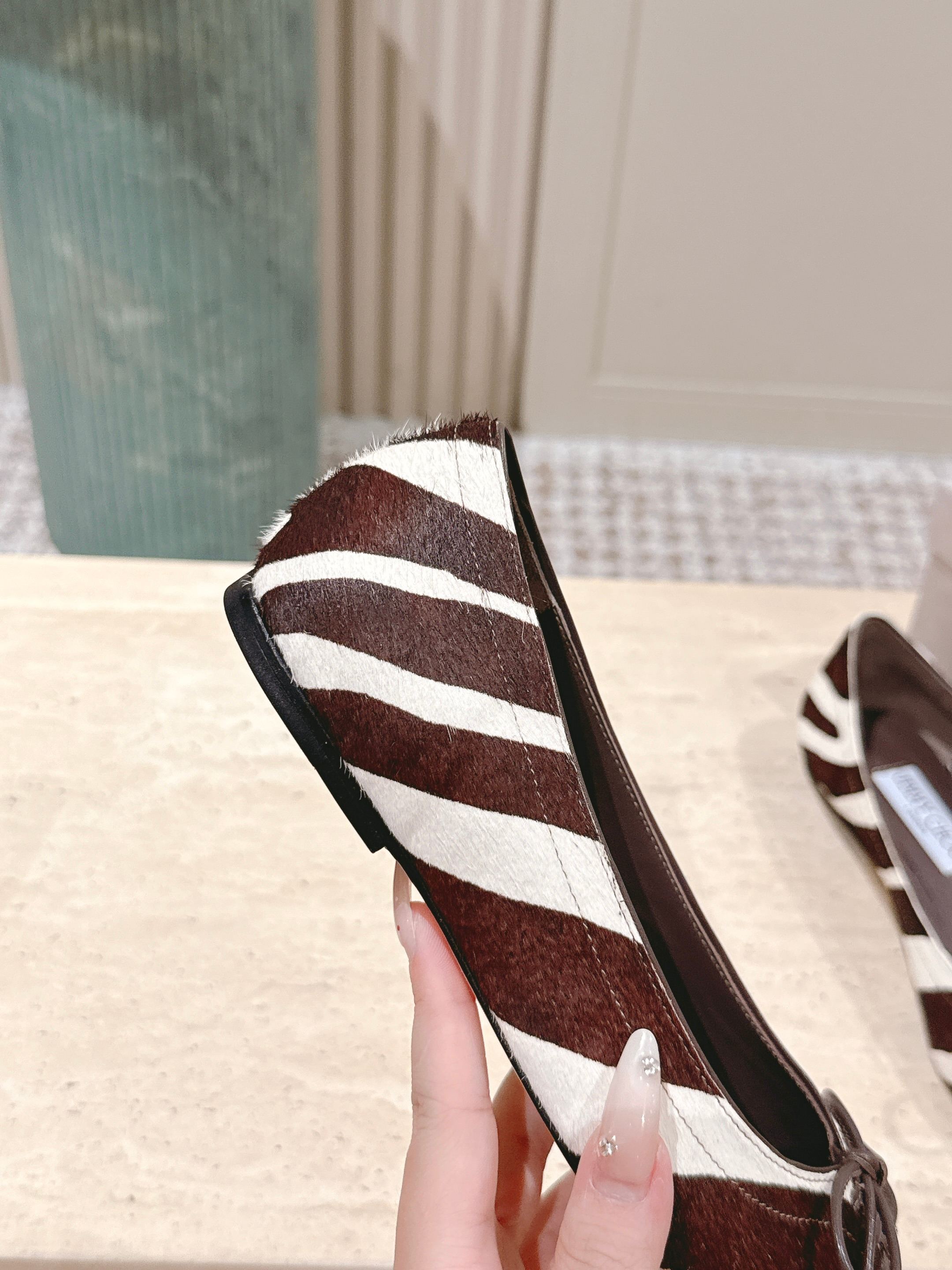 Jimmy 25s Ballet Flats 10mm Brown White Zebra Hair & Sheepskin 431868