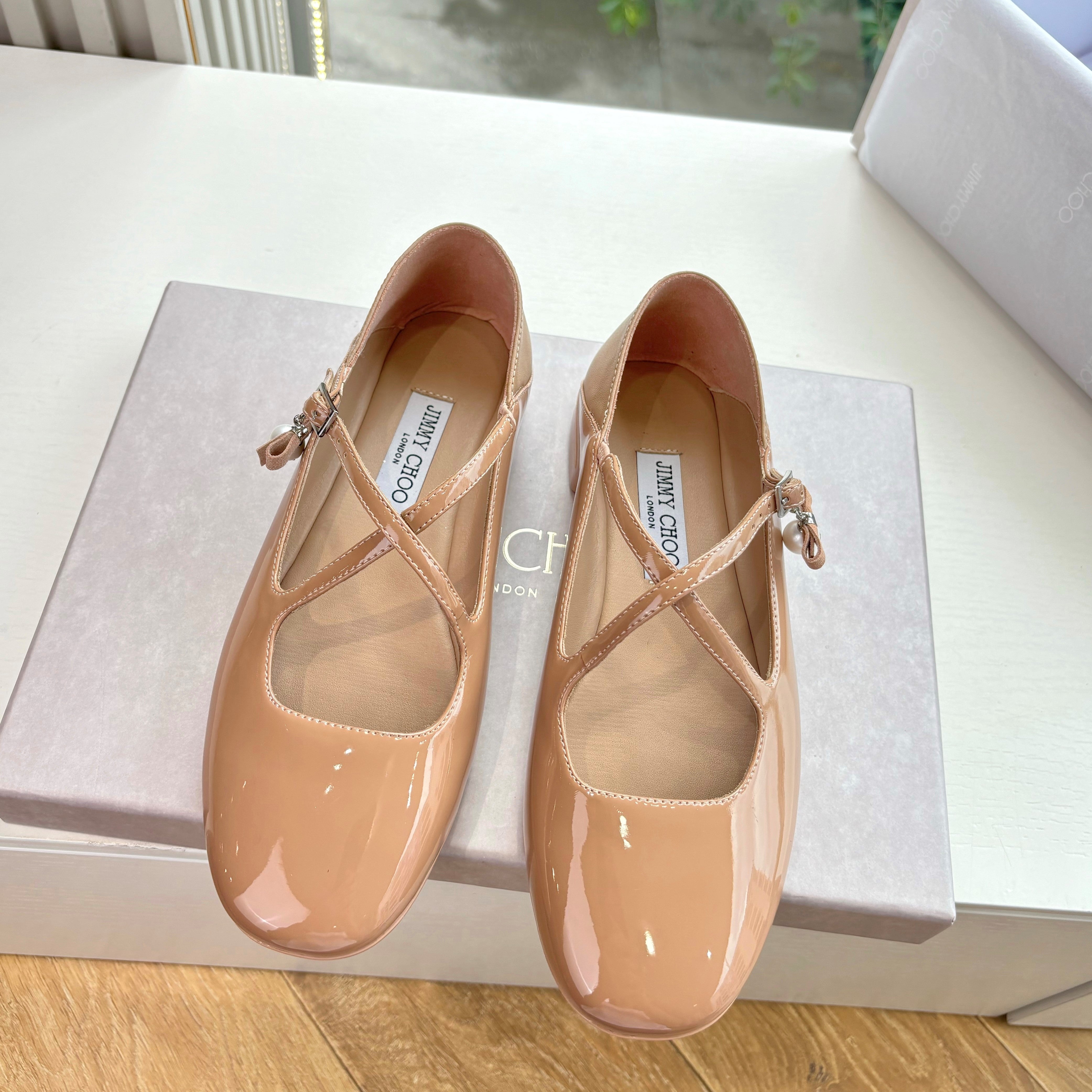Jimmy Eleri Ballerina Shoes Beige Patent Leather 430573