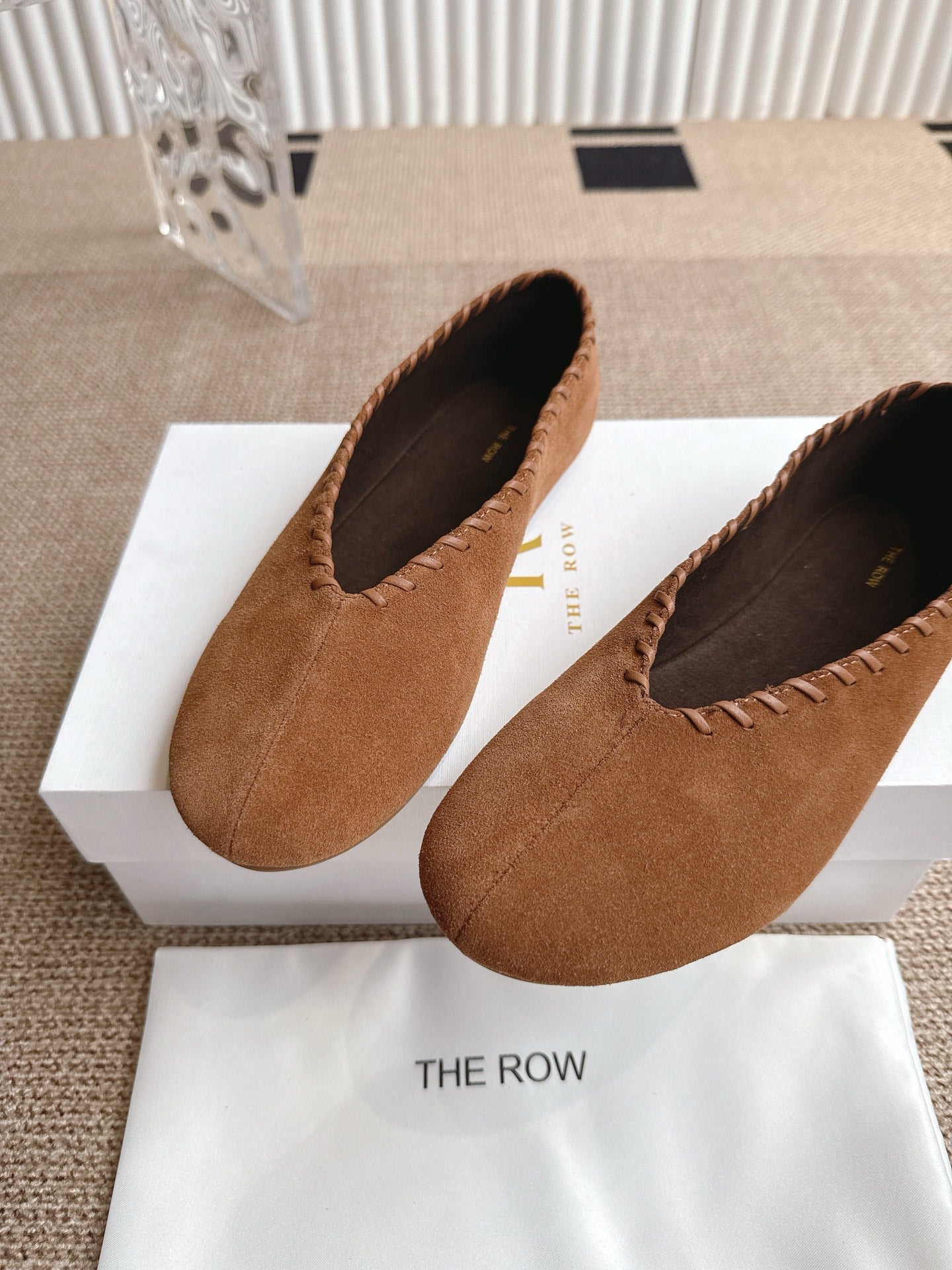 The Row 25ss Ballet Flat Brown Nubuck Leather 443304