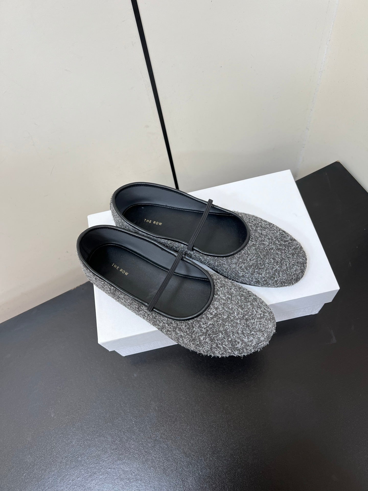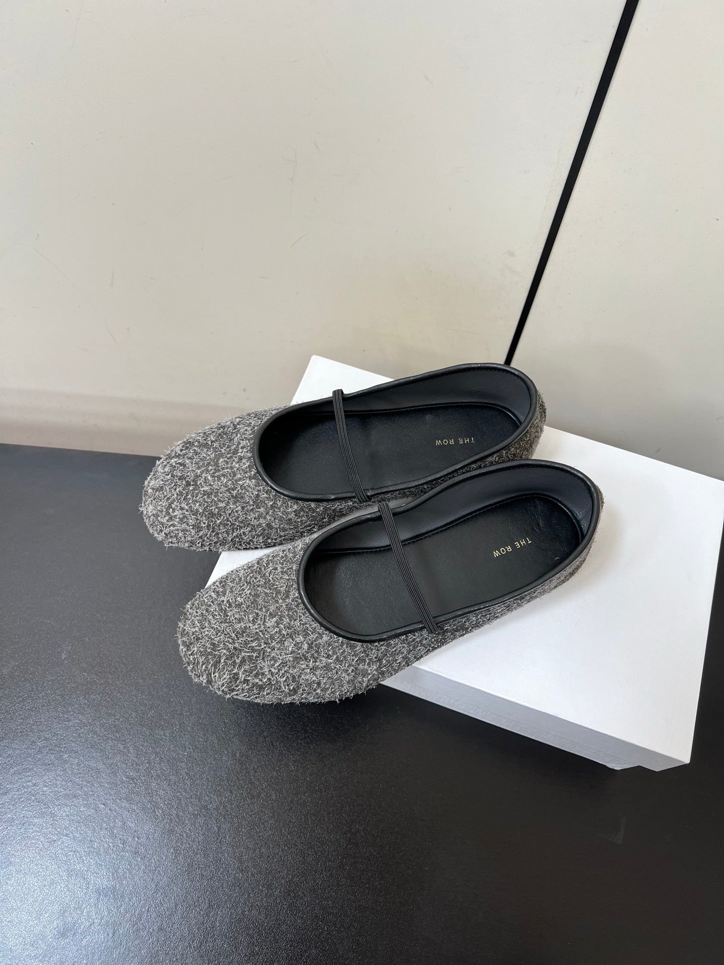 The Row Elastic Ballet Flats Light Grey Sheepskin 339992