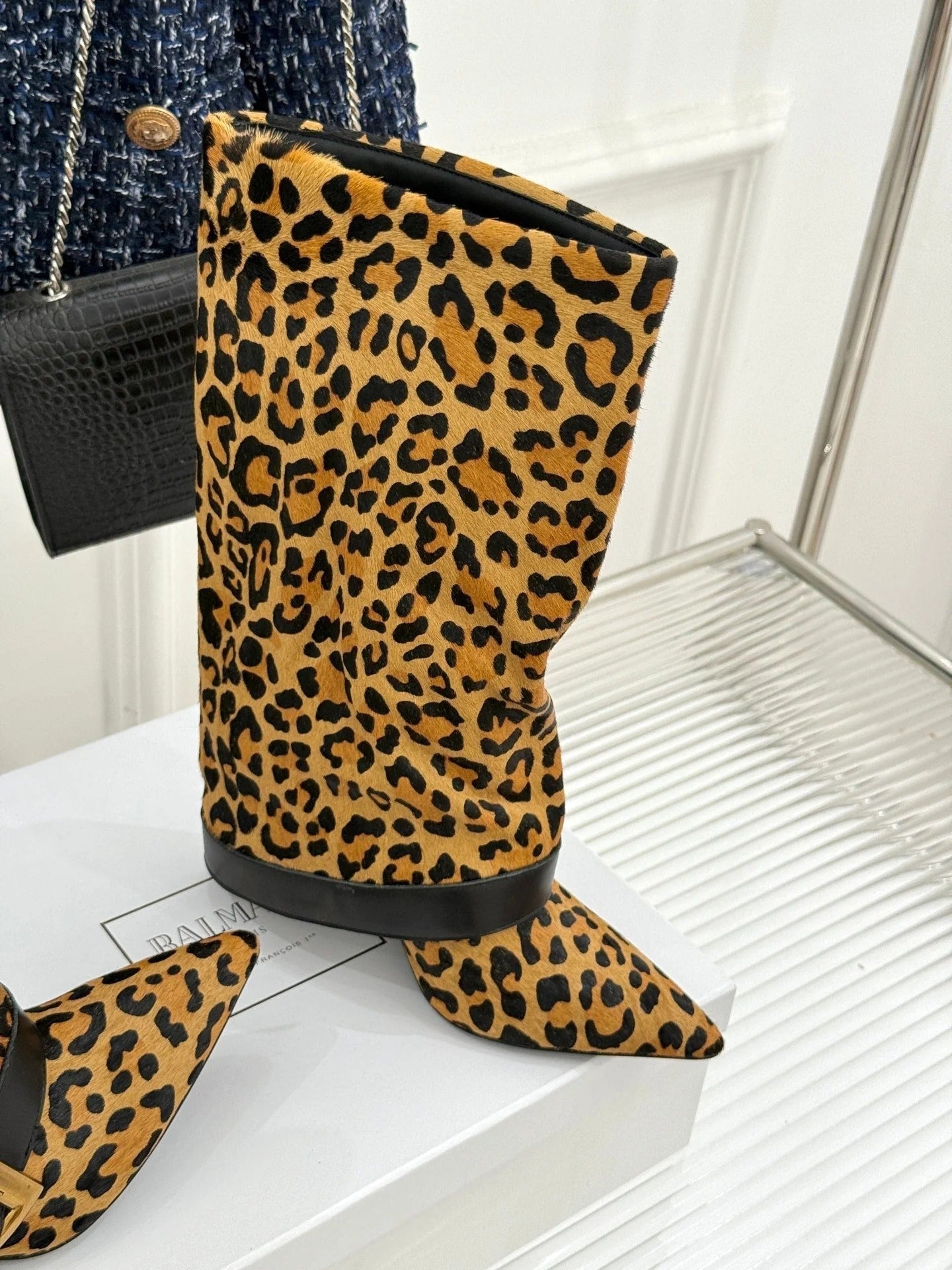 BALMAIN 25S ANTHEM BOOTS IN LEOPARD PRINT CALFSKIN