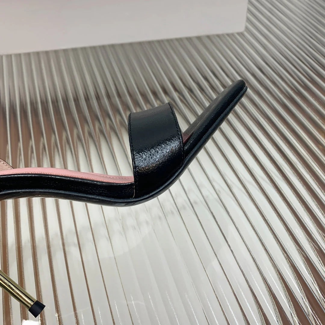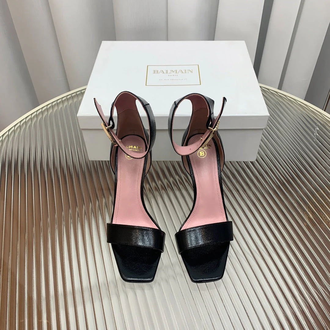 BALMAIN 25S B STRAP HIGH HEEL SANDALS 95MM IN BLACK GLOSSY CALFSKIN